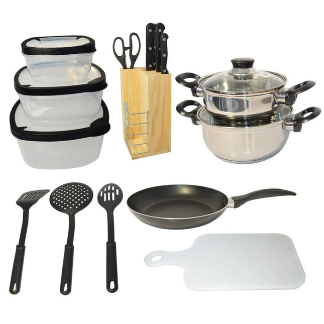 Ontdek de perfecte combinatie van stijl en functionaliteit met de Cheqo 5-delige pannenset. Deze hoogwaardige collectie is ontworpen om aan al uw kookbehoeften te voldoen, of u nu een amateurkok of een professionele chef-kok bent. Met een elegant ontwerp en superieure prestaties zal deze pannenset een onmisbare aanvulling zijn op uw keuken.Geavanceerde Anti-aanbak TechnologieElke pan in deze set is uitgerust met een geavanceerde marmeren laag die zorgt voor een uitstekende anti-aanbakervaring. Dit betekent dat u kunt koken met minder vet en uw gerechten gemakkelijk van de pan naar het bord glijden, zonder dat u zich zorgen hoeft te maken over aangekoekte resten.Veelzijdig en Compatibel met Alle WarmtebronnenDe Cheqo pannenset is ontworpen om compatibel te zijn met alle warmtebronnen, waardoor het een veelzijdige keuze is voor elke keuken. Of u nu kookt op gas, elektrisch, keramisch of een andere warmtebron, deze pannen leveren consistente en betrouwbare resultaten.Ergonomisch Ontworpen HandgrepenComfort en veiligheid staan voorop met de ergonomisch ontworpen handgrepen van deze pannenset. De handgrepen zijn ontworpen om een stevige grip te bieden en zijn hittebestendig, zodat u met vertrouwen kunt koken.Belangrijke Kenmerken:- 5-delige pannenset, perfect voor diverse kooktaken- Gemaakt van gesmeed aluminium voor duurzaamheid en efficiënte warmtegeleiding- Marmeren anti-aanbaklaag voor gezond koken en eenvoudige reiniging- Geschikt voor alle warmtebronnen, inclusief de meest moderne oplossingen- Hittebestendige handgrepen voor veilig en comfortabel gebruikVoordelen:- Minder olie of boter nodig bij het koken, wat bijdraagt aan een gezondere levensstijl- Gemakkelijk schoon te maken en te onderhouden dankzij de anti-aanbaklaag- Duurzame constructie zorgt voor een lange levensduur van de pannen- Esthetisch aantrekkelijk ontwerp past bij elke keukeninrichtingMaak de overstap naar een moeiteloze kookervaring met de Cheqo 5-delige pannenset. Of u nu uw kookkunsten wilt verbeteren of gewoon op zoek bent naar betrouwbare en stijlvolle keukenbenodigdheden, deze set zal uw verwachtingen overtreffen. Klik nu om uw culinaire avontuur te beginnen met Cheqo!