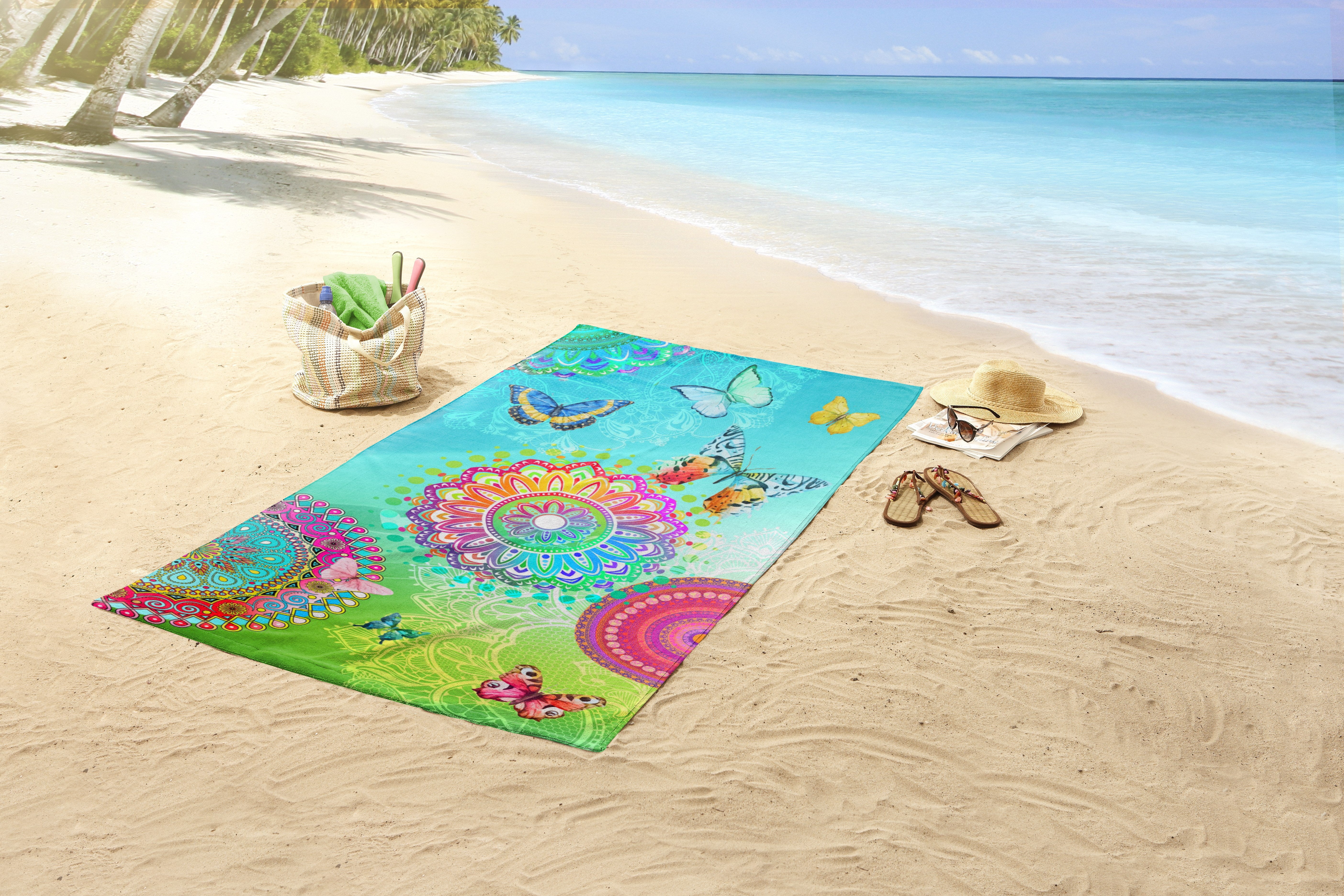 Strandlaken 100x180 cm - Mandala en Vlinder Print - Multicolor - 1 Persoons - 100% Katoen