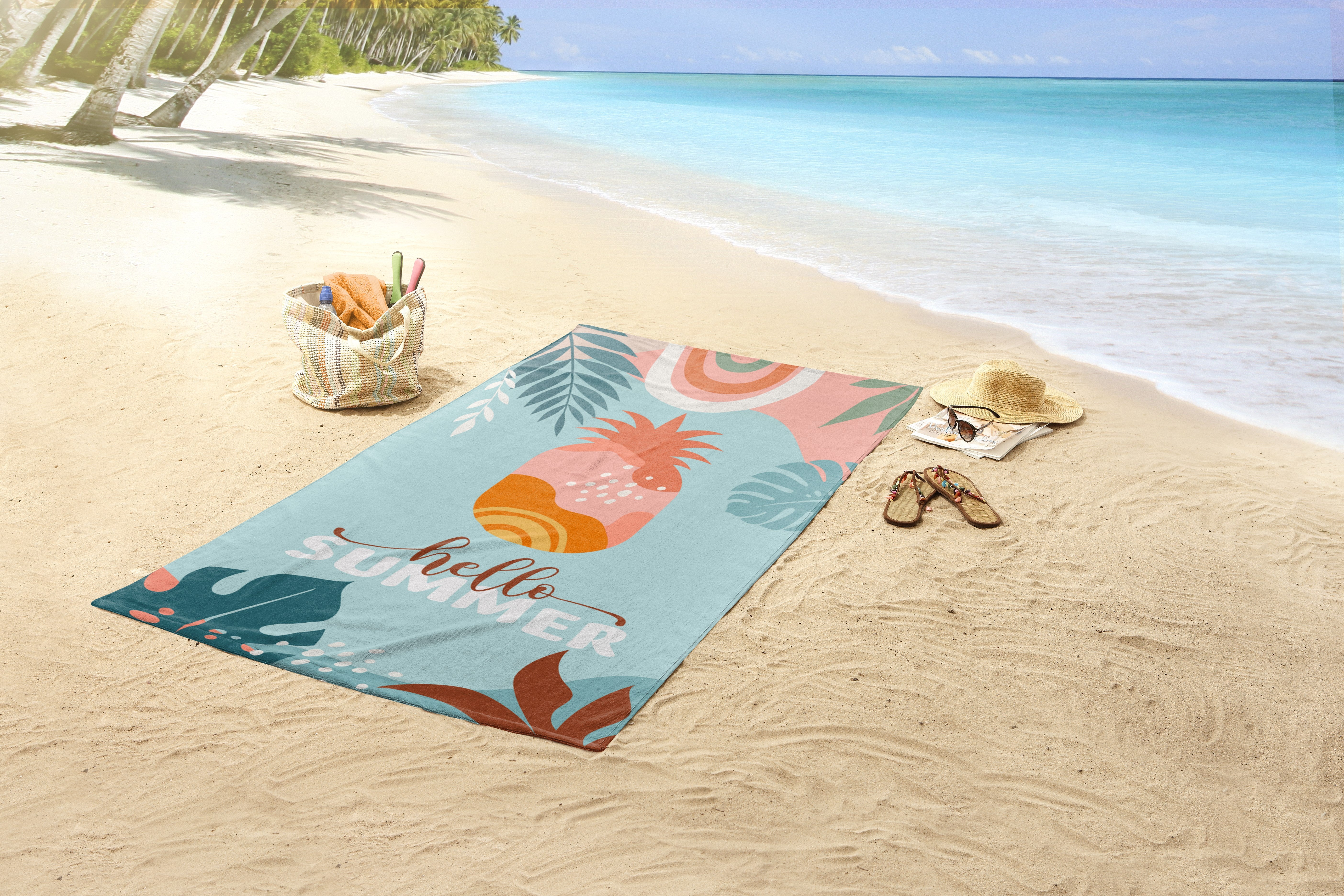 Strandlaken 100x180 cm - Tropische Ananas en Bladeren Print - Hello Summer Design - Poly Velours - Voor 1 Persoon