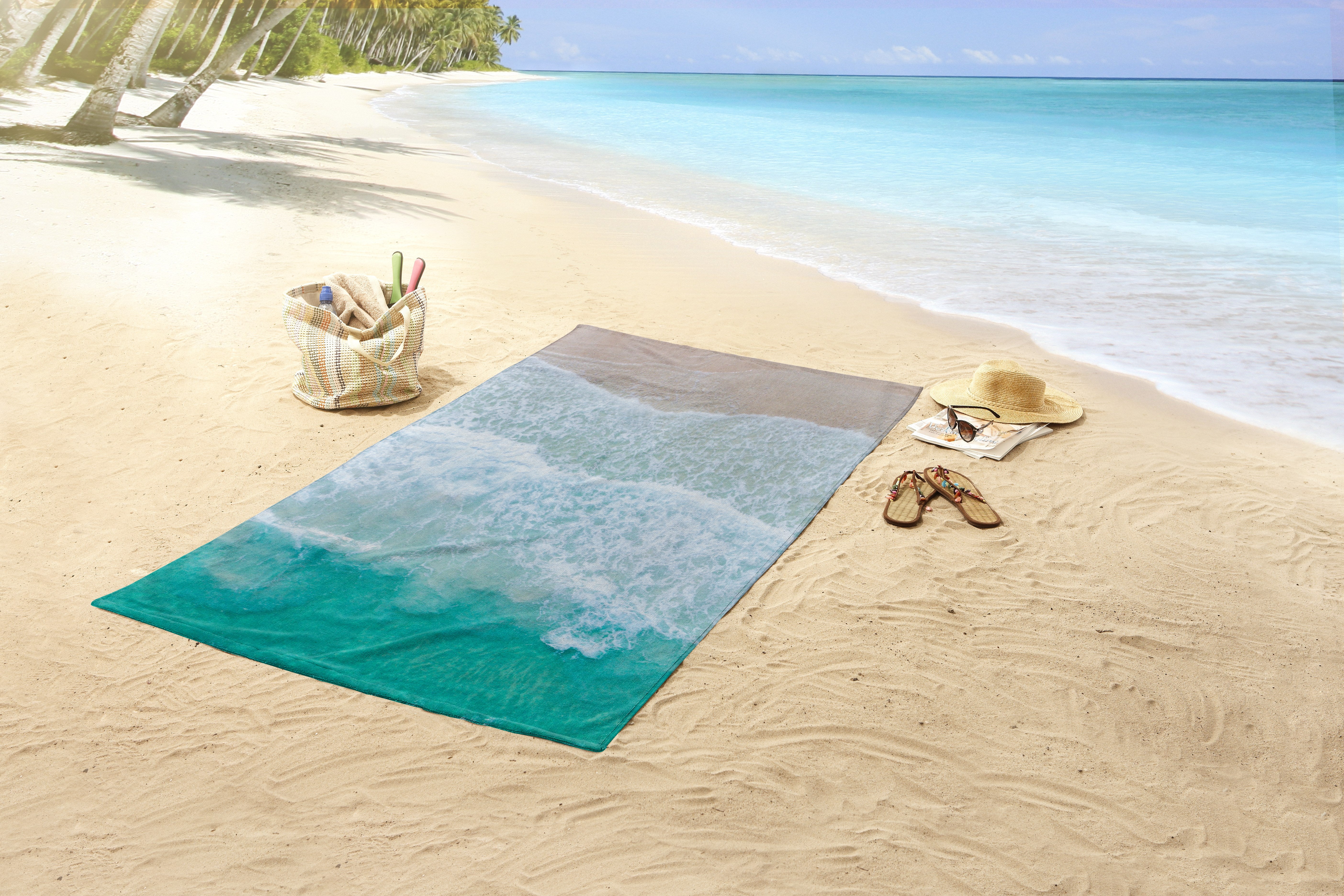 Strandlaken 100x180 cm - Zee en Strand Print - Poly Velours - Good Morning - Zand en Oceaan Design