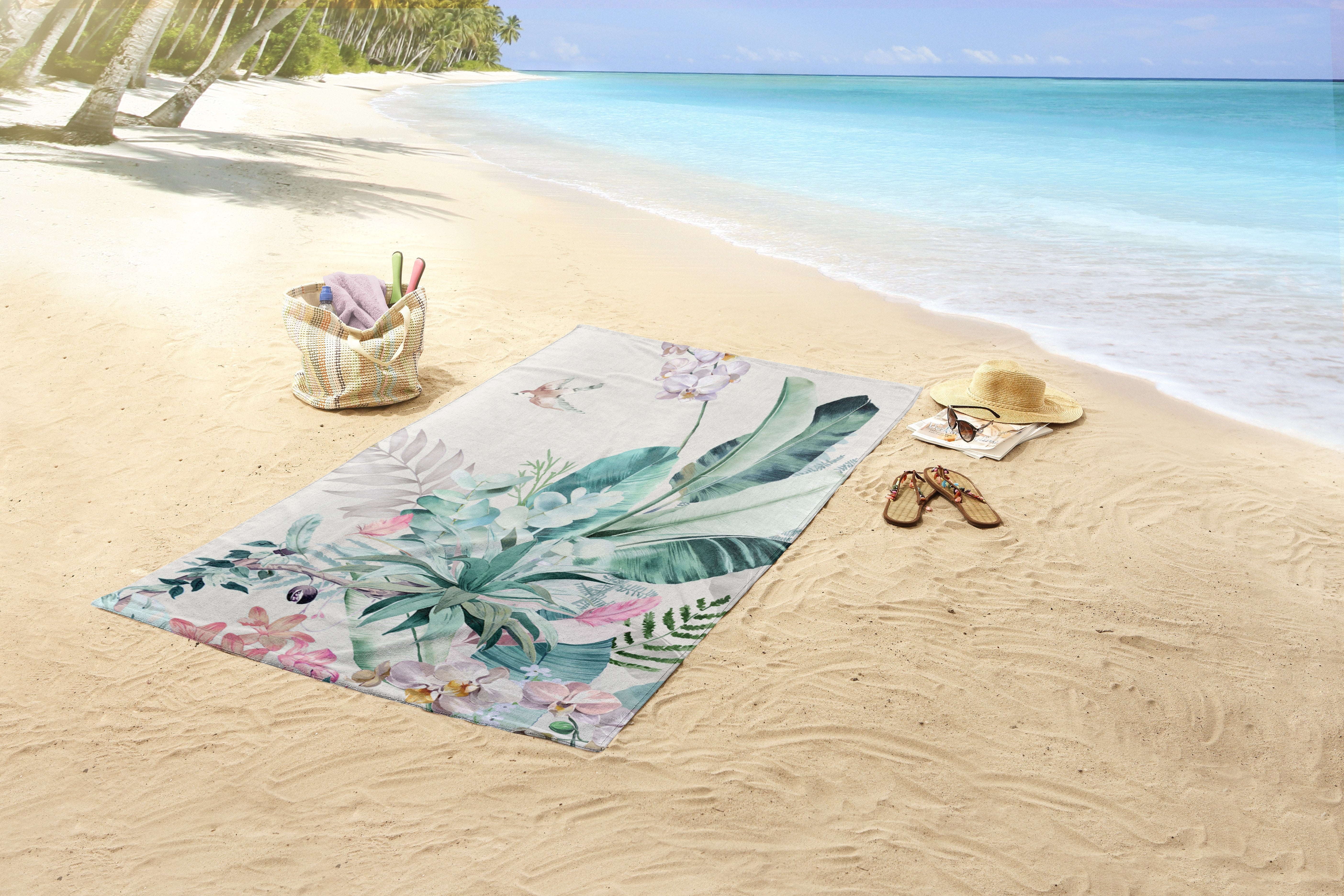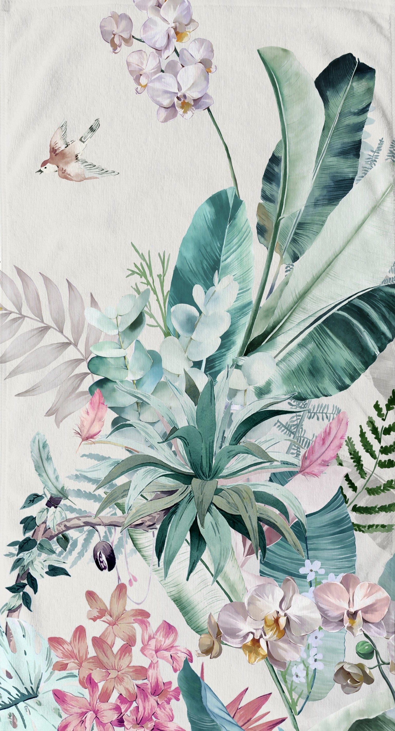 Tropisch Strandlaken 100x180 cm - Bloemen en Bladeren Print - Multi Kleuren - Poly Velours