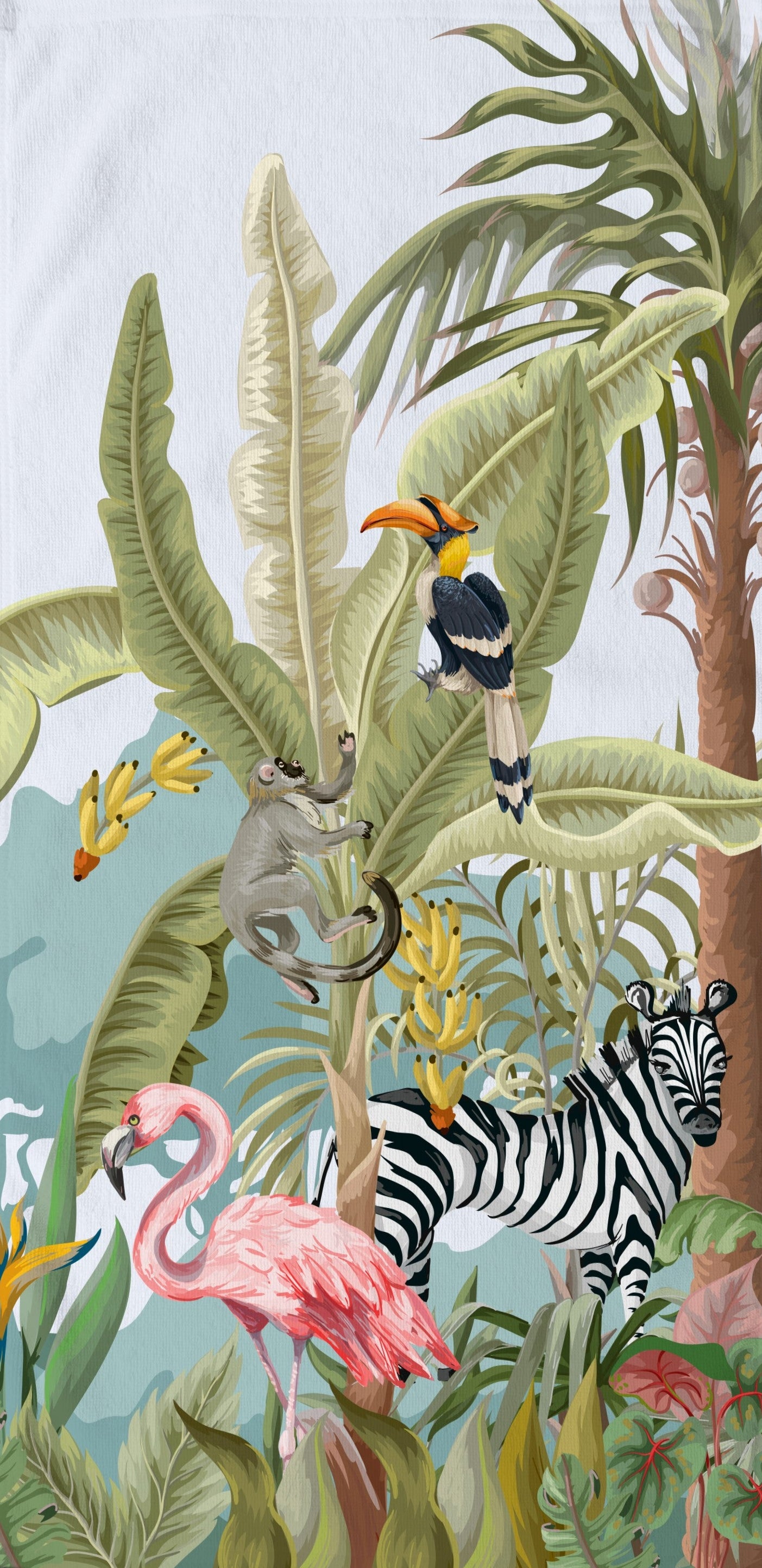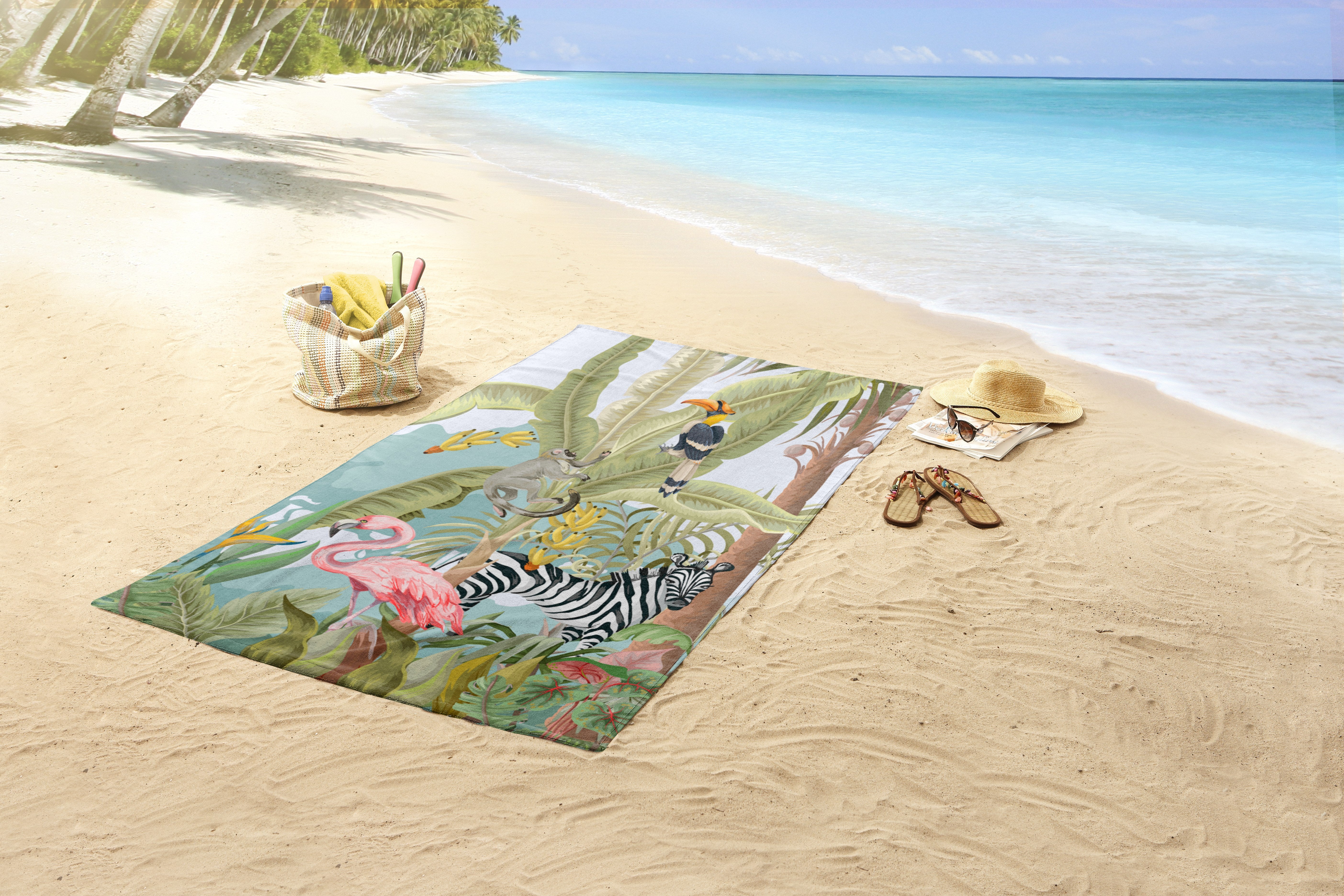 Strandlaken voor Kinderen - 75x150 cm - Jungle Dieren Print - Flamingo, Zebra, Toekan - Poly Velours - Good Morning