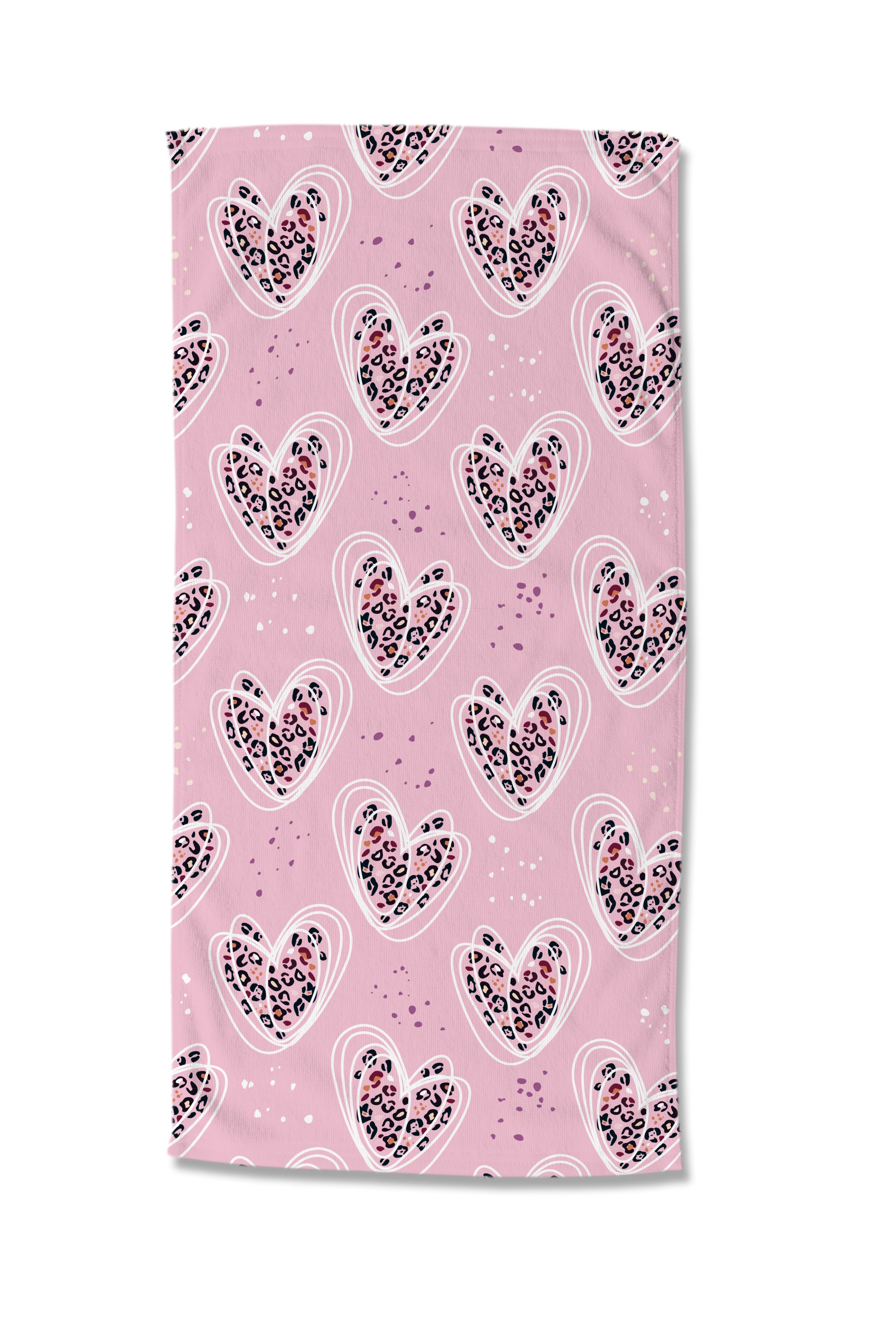 Strandlaken voor Kinderen 75x150 cm - Roze Hartjes en Luipaardprint - Good Morning - Zacht Polyester Velours - Oeko-Tex Gecertificeerd