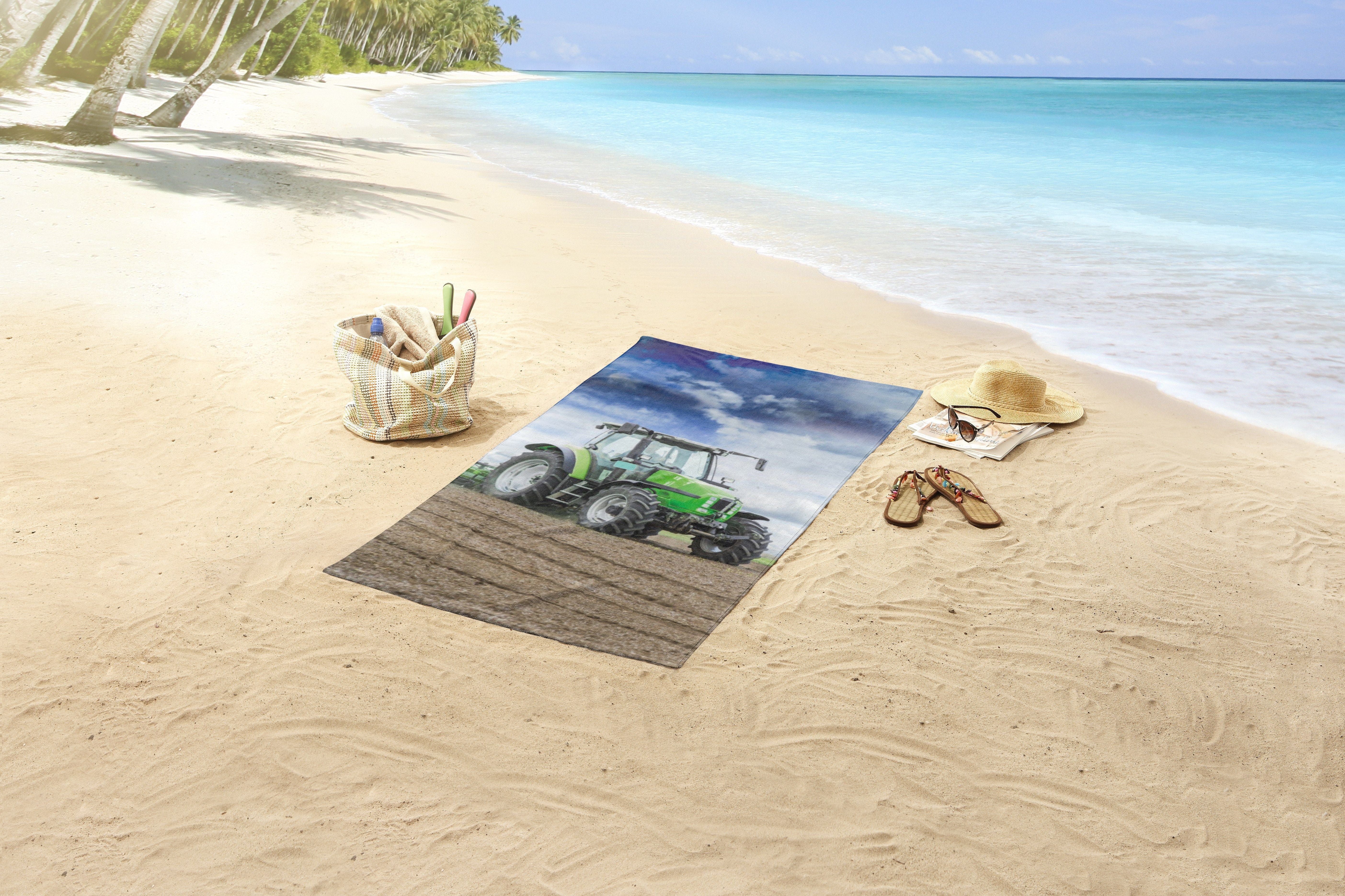 Strandlaken voor Kinderen - 75x150 cm - Tractors en Natuur Print - Groen - Poly Velours