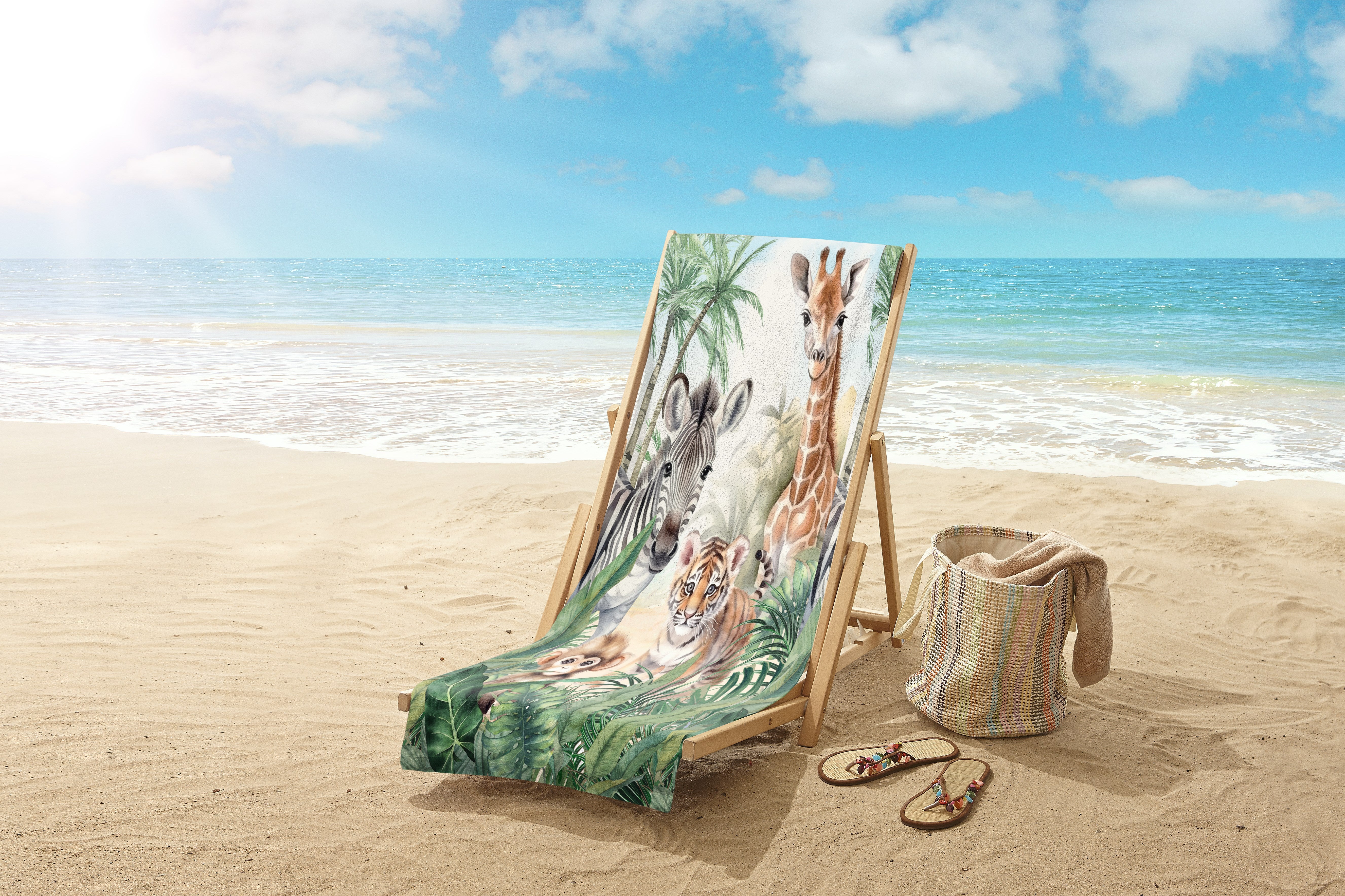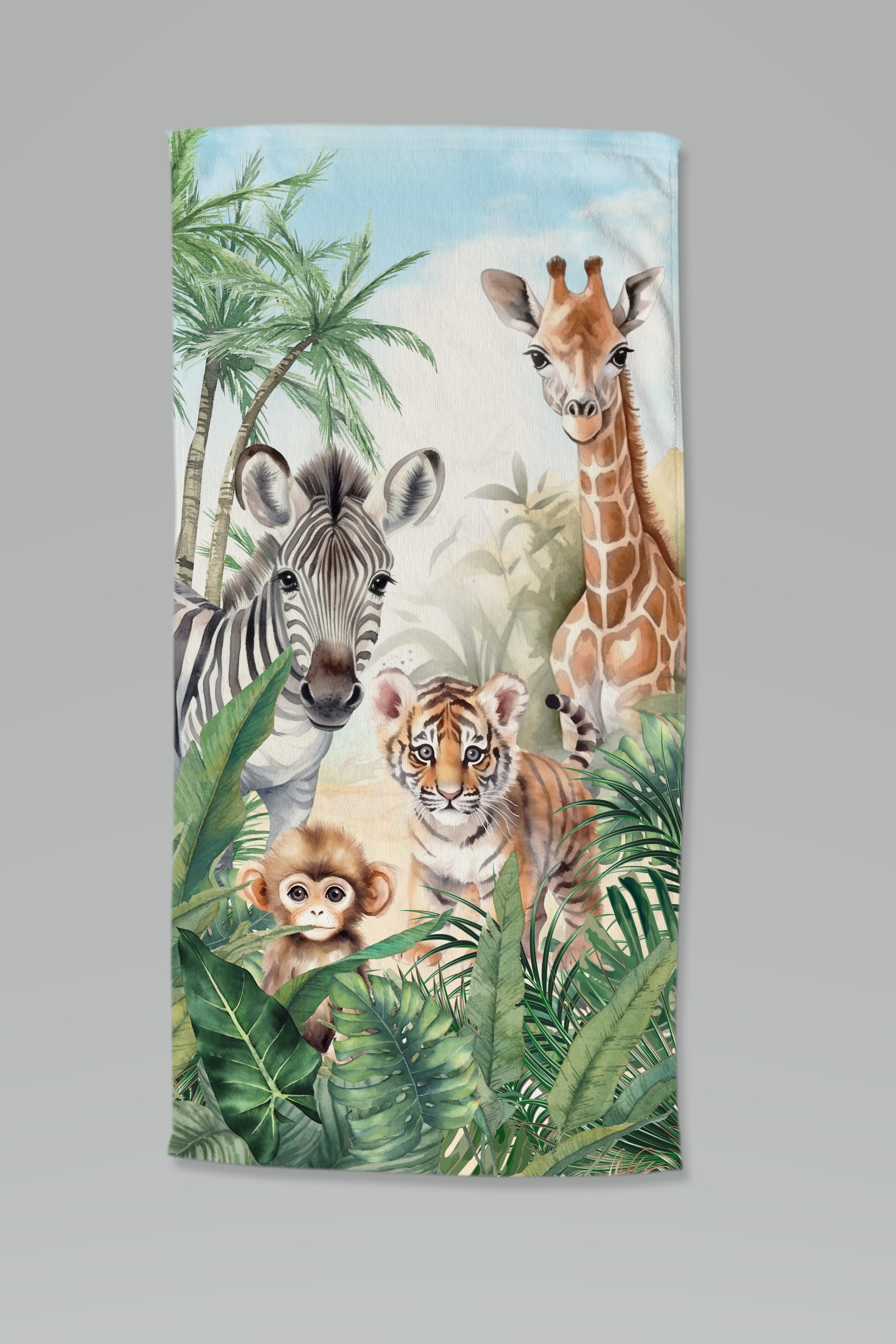 Strandlaken voor Kinderen 75x150 cm - Jungle Dieren Print - Zebra, Giraffe, Tijger, Aap - Multi - Oeko-Tex Gecertificeerd - Good Morning