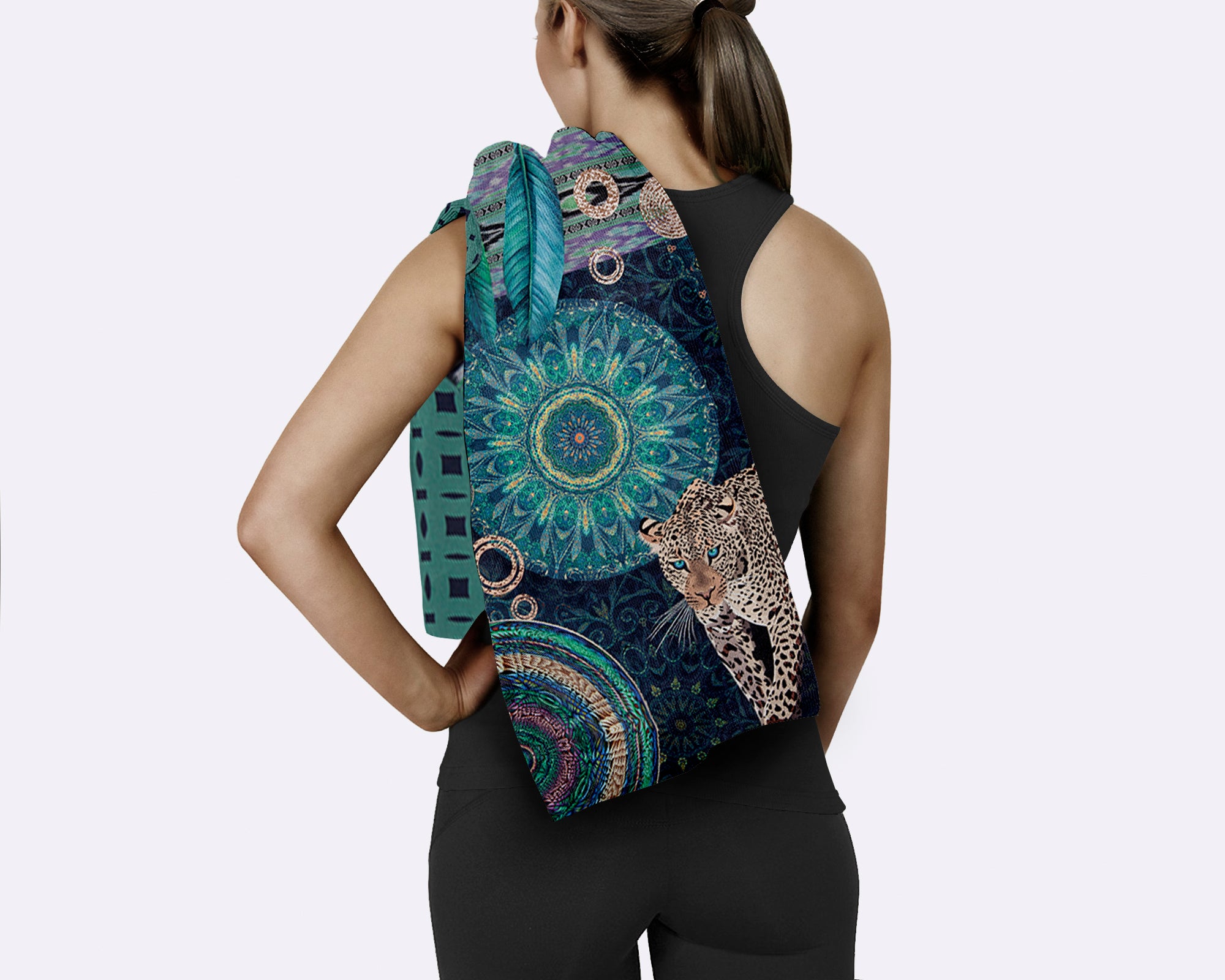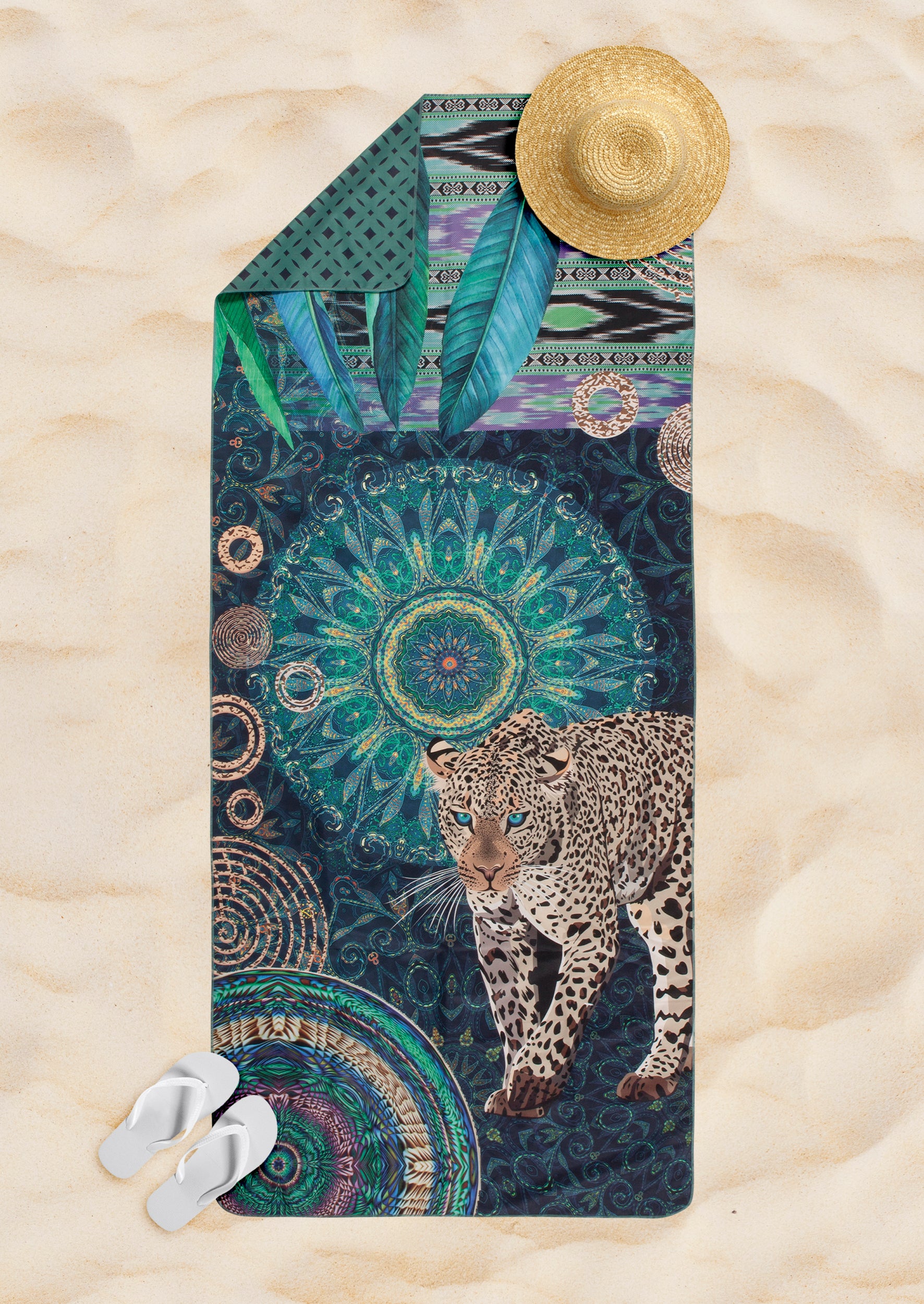 Luxe Polyvelvet Strandlaken 50x100 cm - Luipaard en Mandala Print - Multicolor - Sport & Travel Handdoek