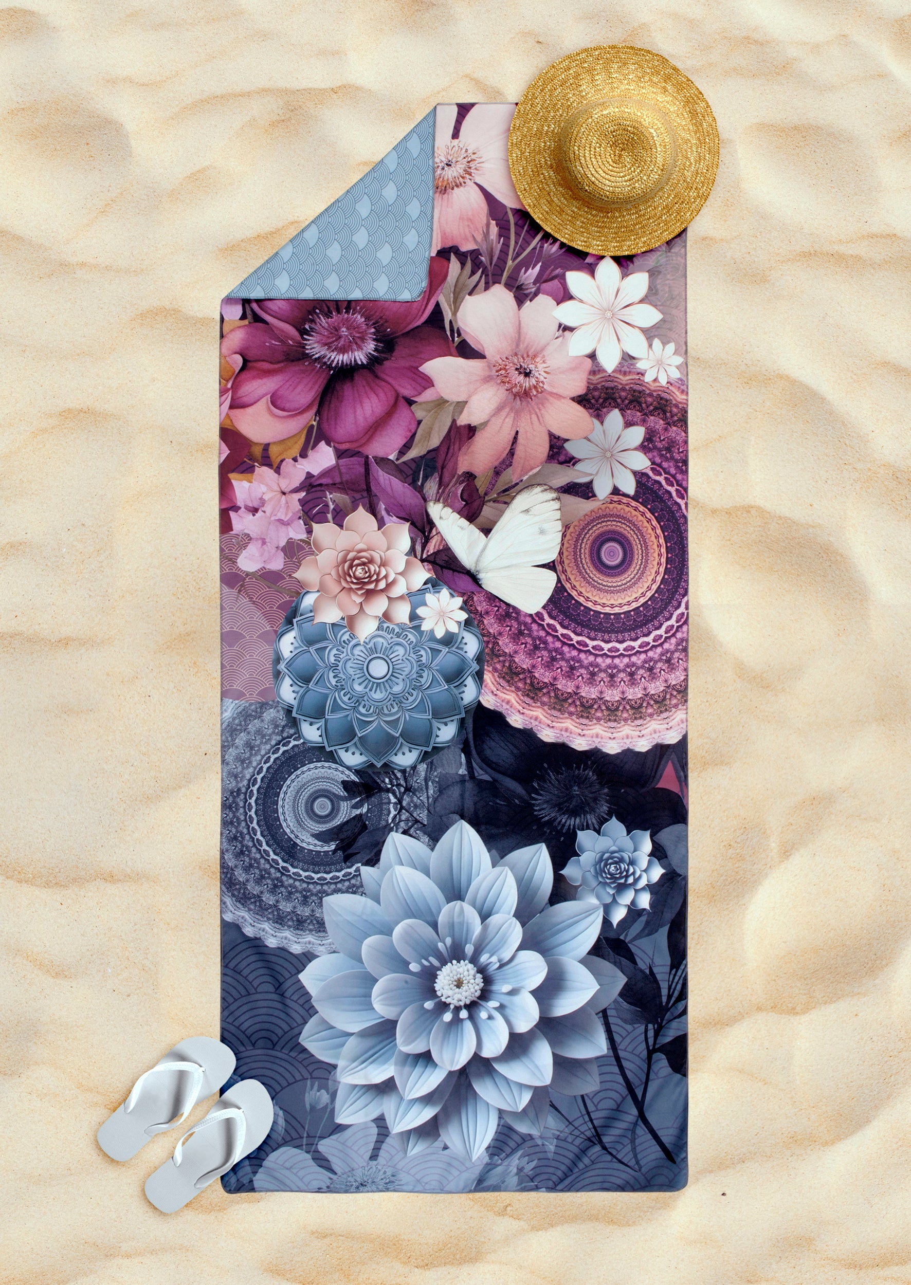Yoga/Reishanddoek 75x180 cm - Mandala en Bloemen Print - Multi - 1 Persoons - 100% Microvezel - Oeko-Tex Gecertificeerd