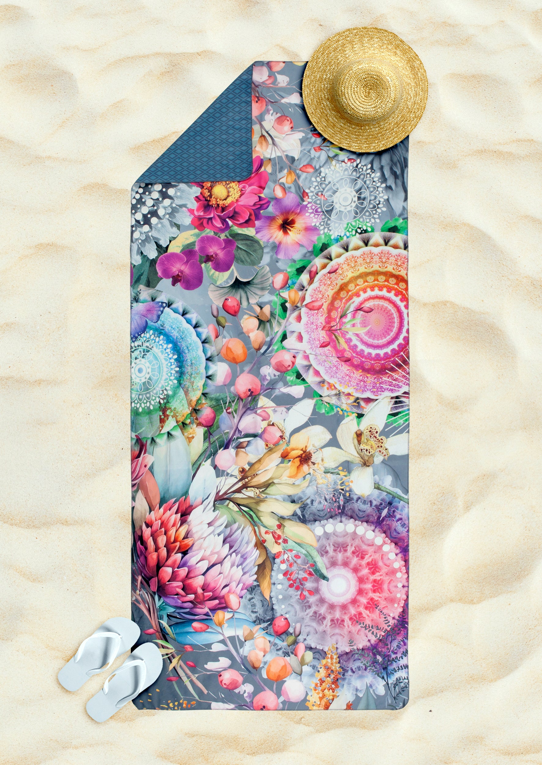 Yoga/Reishanddoek 75x180 cm - Mandala en Bloemenprint - Grijs - Microvezel - Oeko-Tex Gecertificeerd