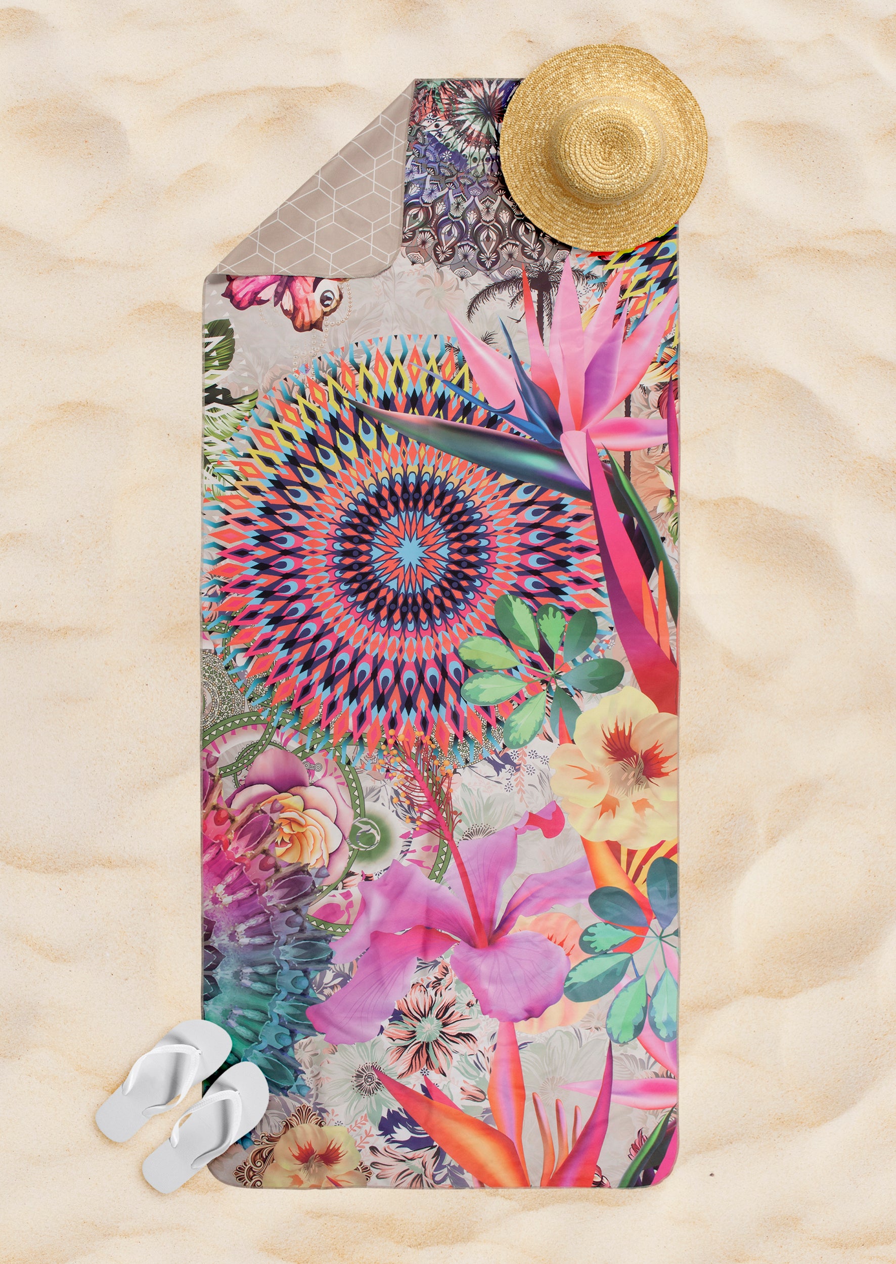 Strandlaken 75x180 cm - Kleurrijke Bloemenprint - Polyvelvet - Voor Sport & Reizen