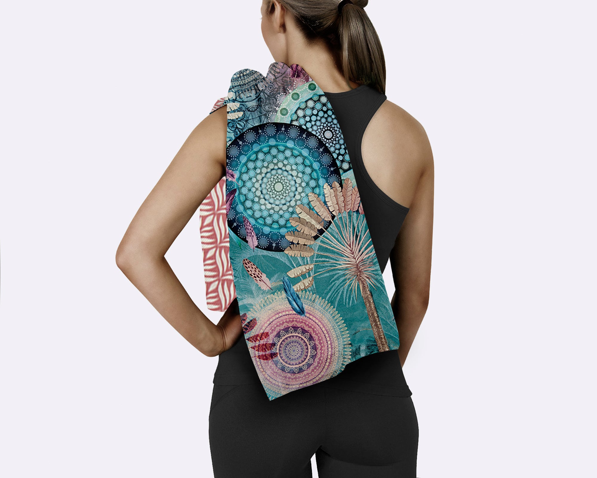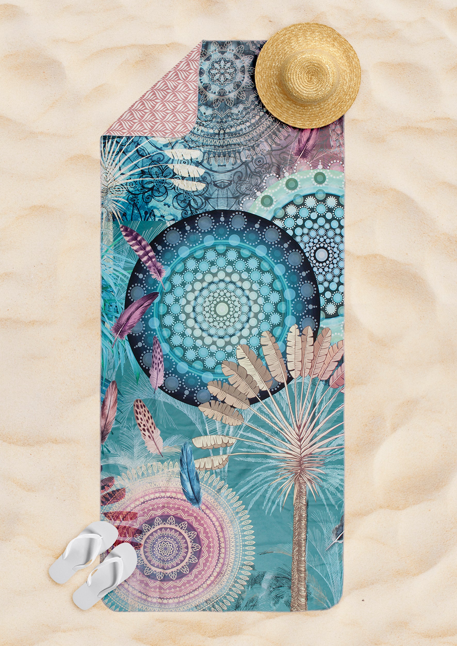 Strandlaken 75x180 cm - Mandala en Veer Print - Blauw/Paars - Polyvelvet - Voor Sport & Reizen