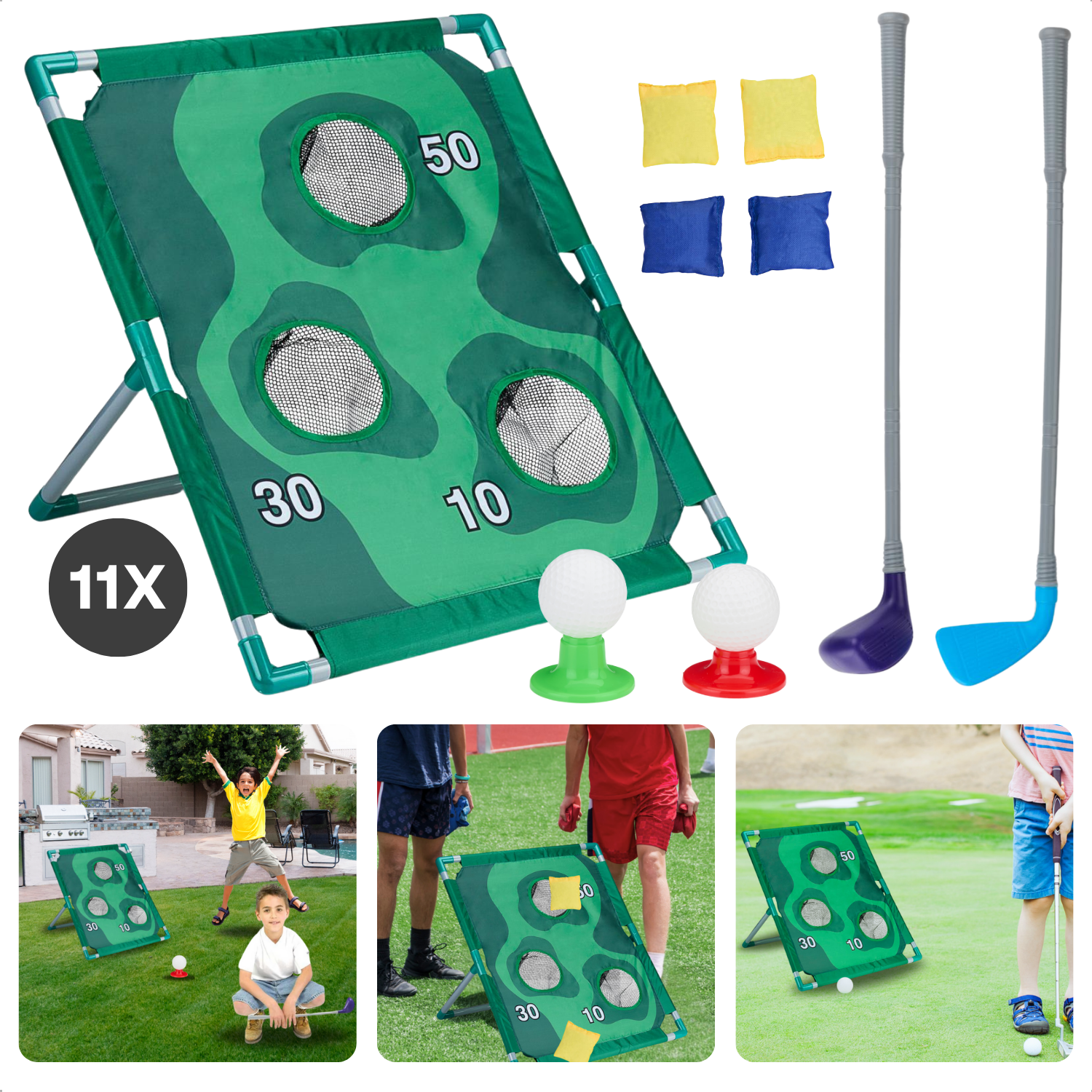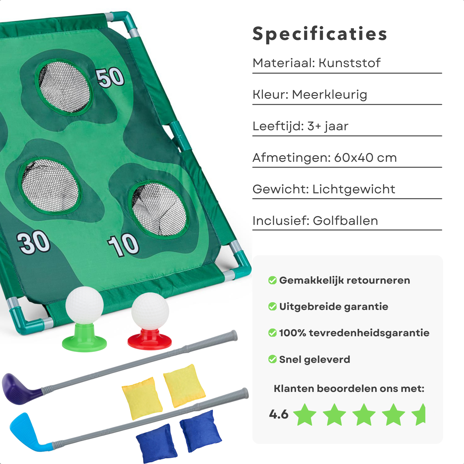 Cheqo® 2-in-1 Kinderspel Golf & Cornhole Set - Educatief Buitenspeelgoed - Werpspel - Inclusief Doelen en Clubs - Beanbag Game