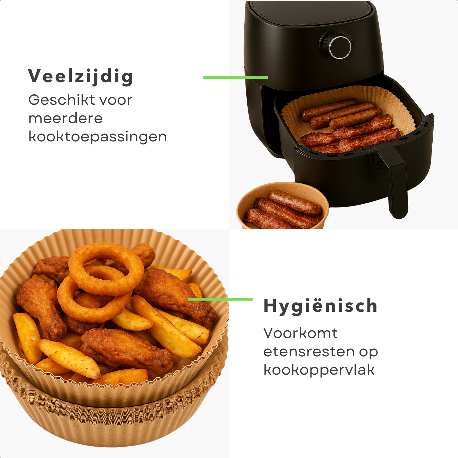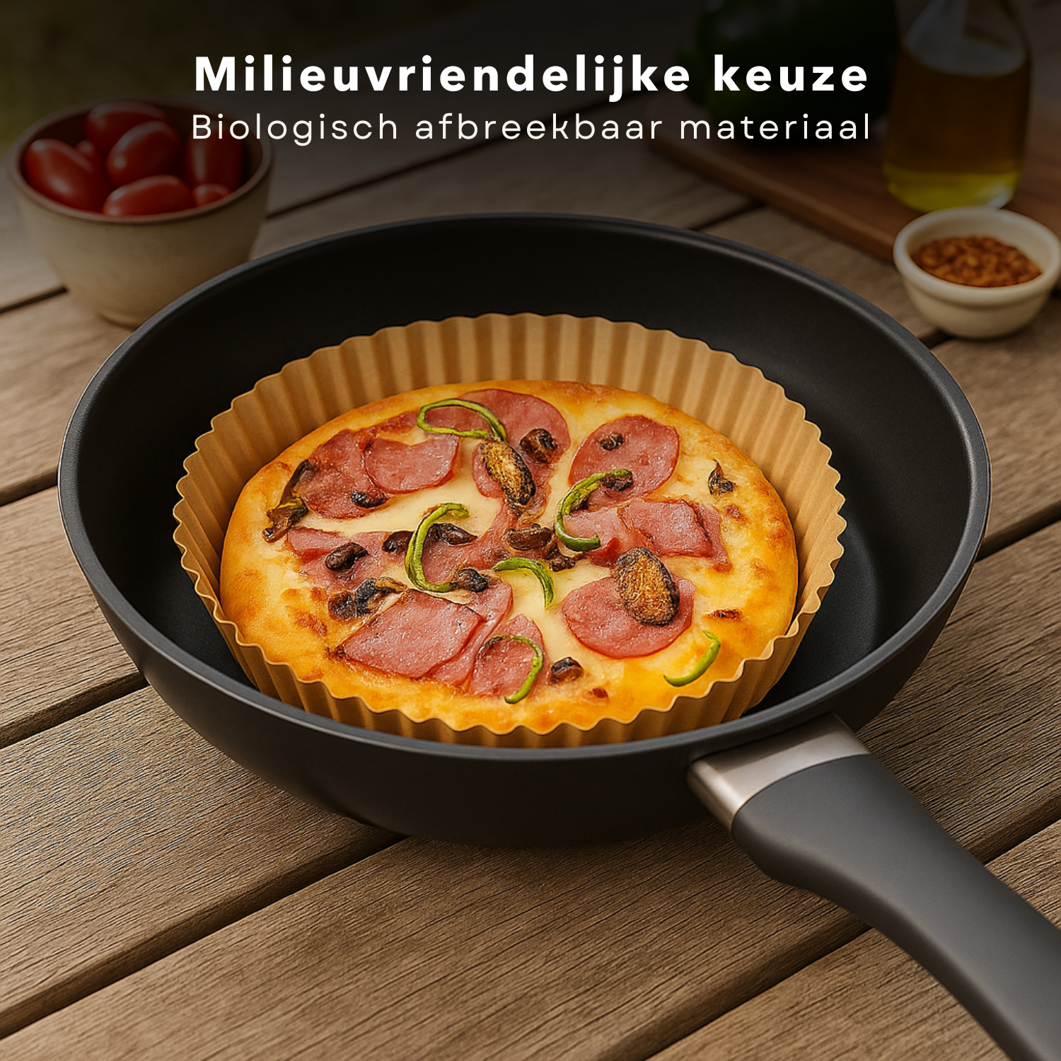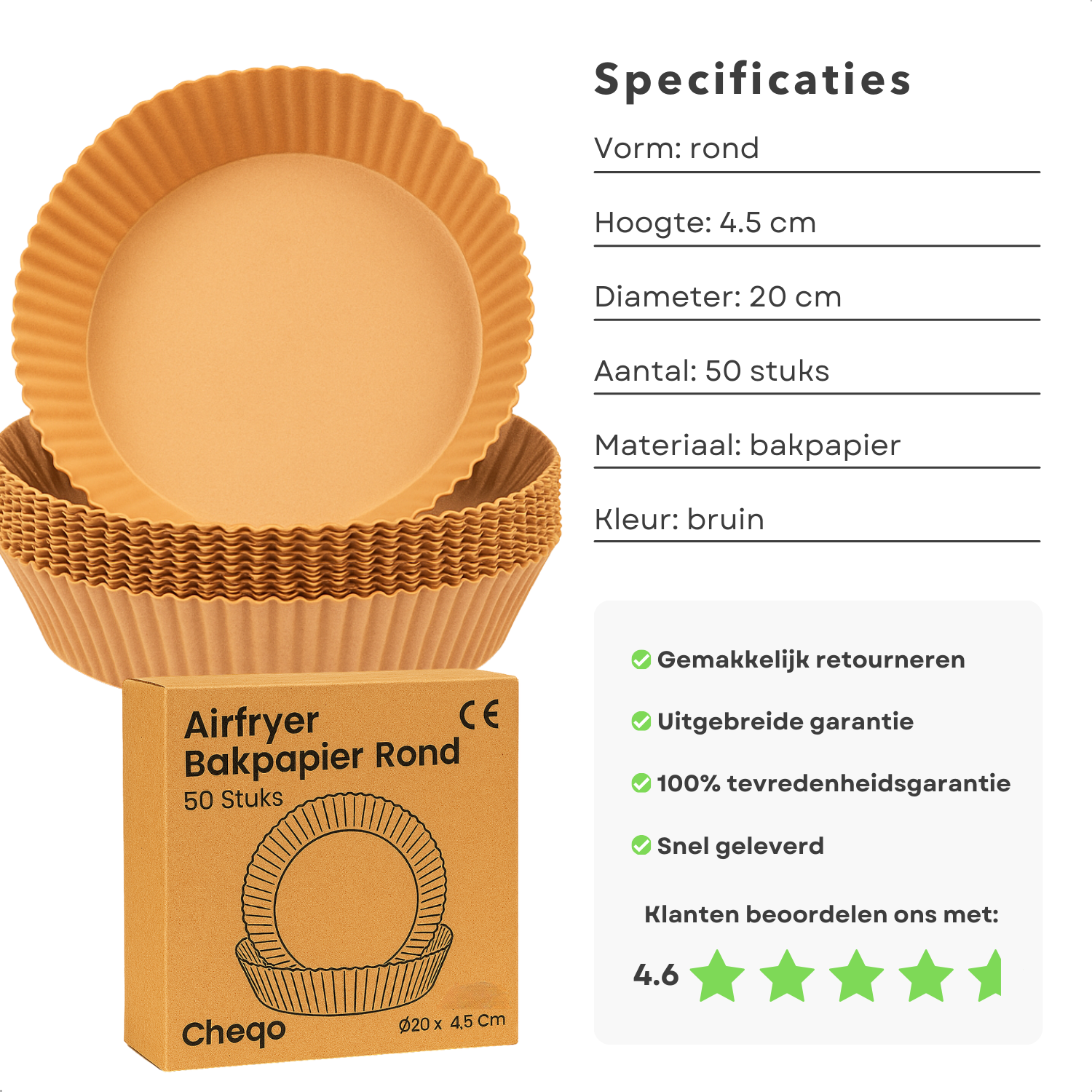 Cheqo® Airfryer Bakpapier - Wegwerpbakjes - 50 Stuks - Rond Bakpapier - Ø20 cm - Airfryer Accessoires - Heteluchtfriteuse - Geschikt Voor Airfryer - Wegwerp Bakpapier - Luchtfriteuse Bakpapier - Airfryer Wegwerp