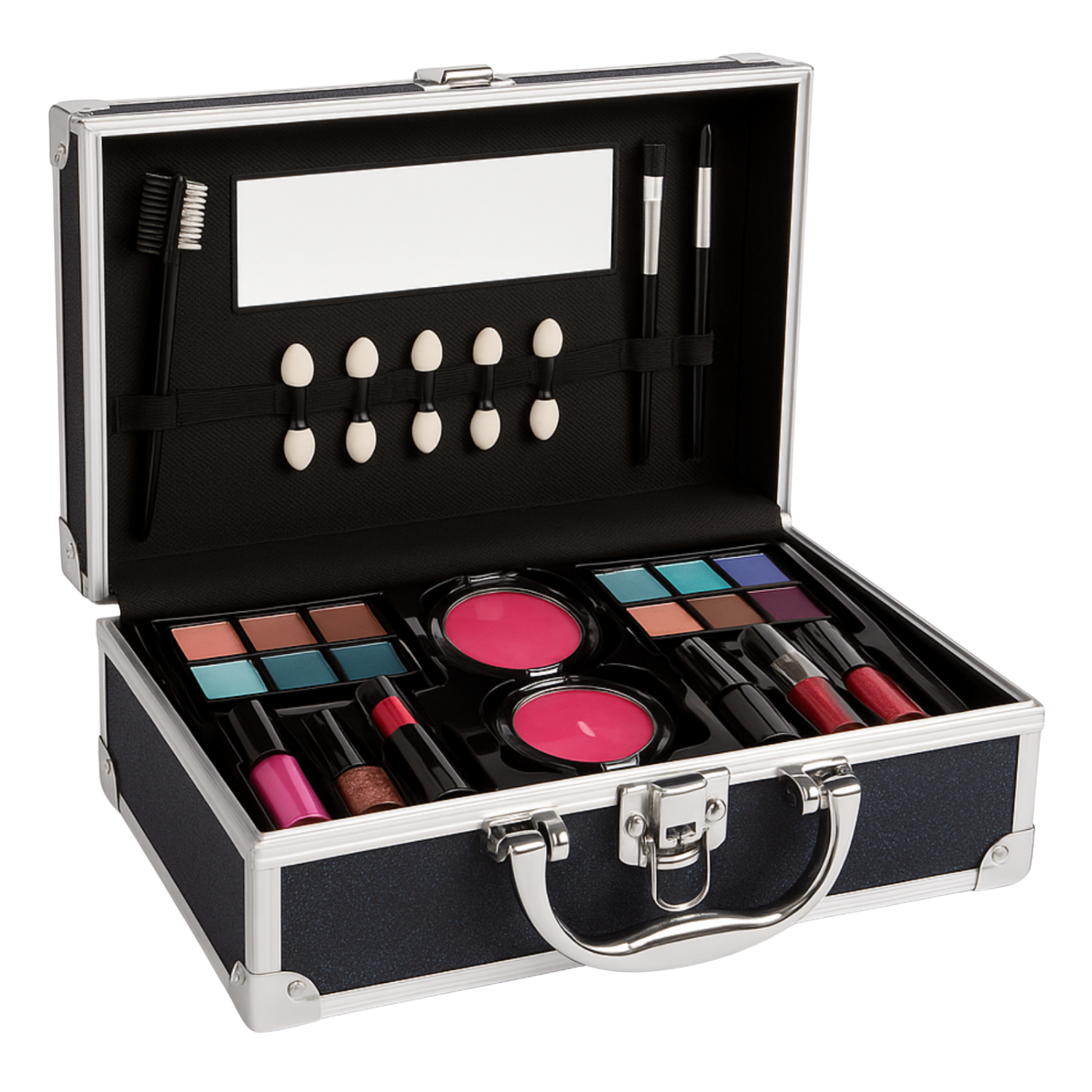 Ontdek de magie van de Cheqo® Aluminium Make-Up Koffer in donkerblauw met glitter! Deze complete set is perfect voor jonge... Lees meer