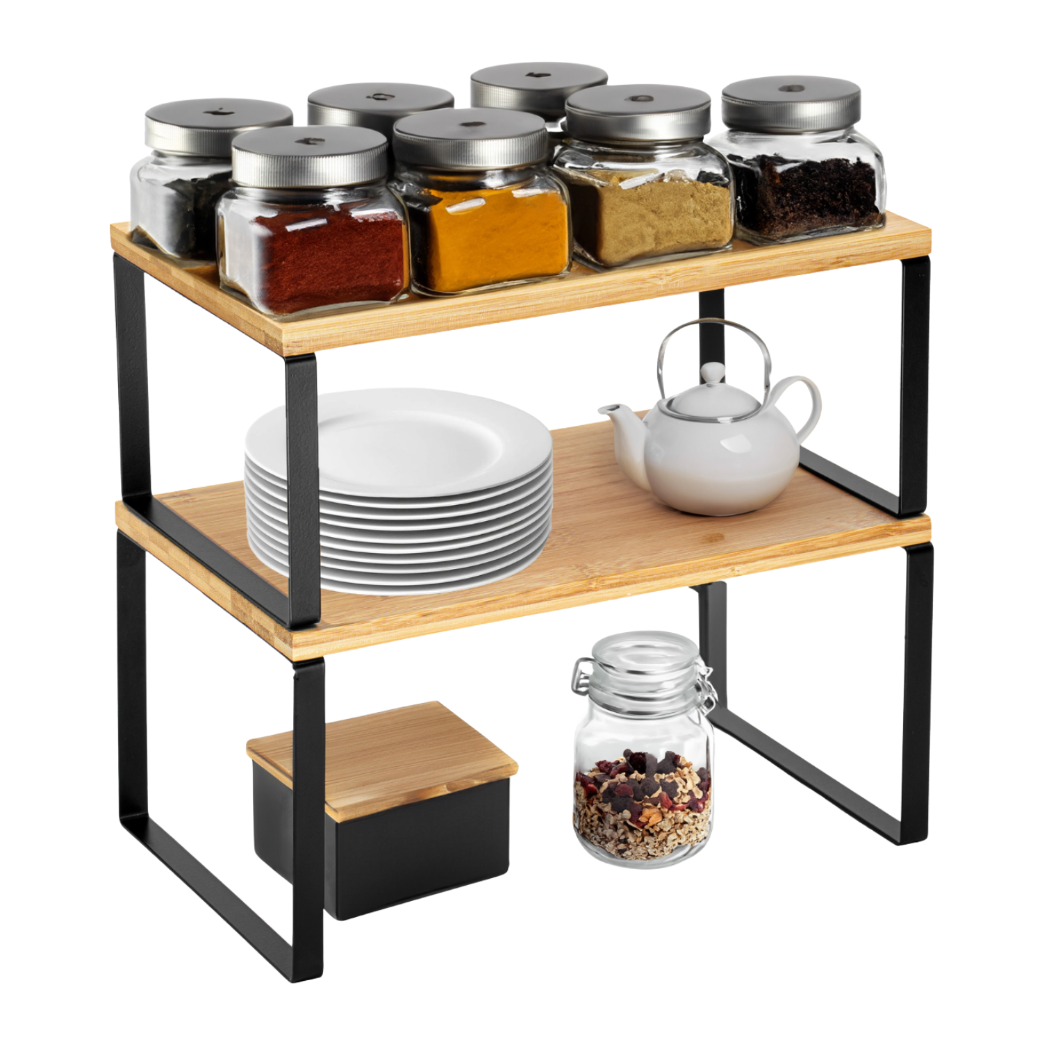 Cheqo® Bamboe Keukenrek - Aanrecht Organizer - Stapelbare Metalen Frame Rekjes - Keuken Organizer - Aanrecht organizer - Keukenkast - Keukenrek