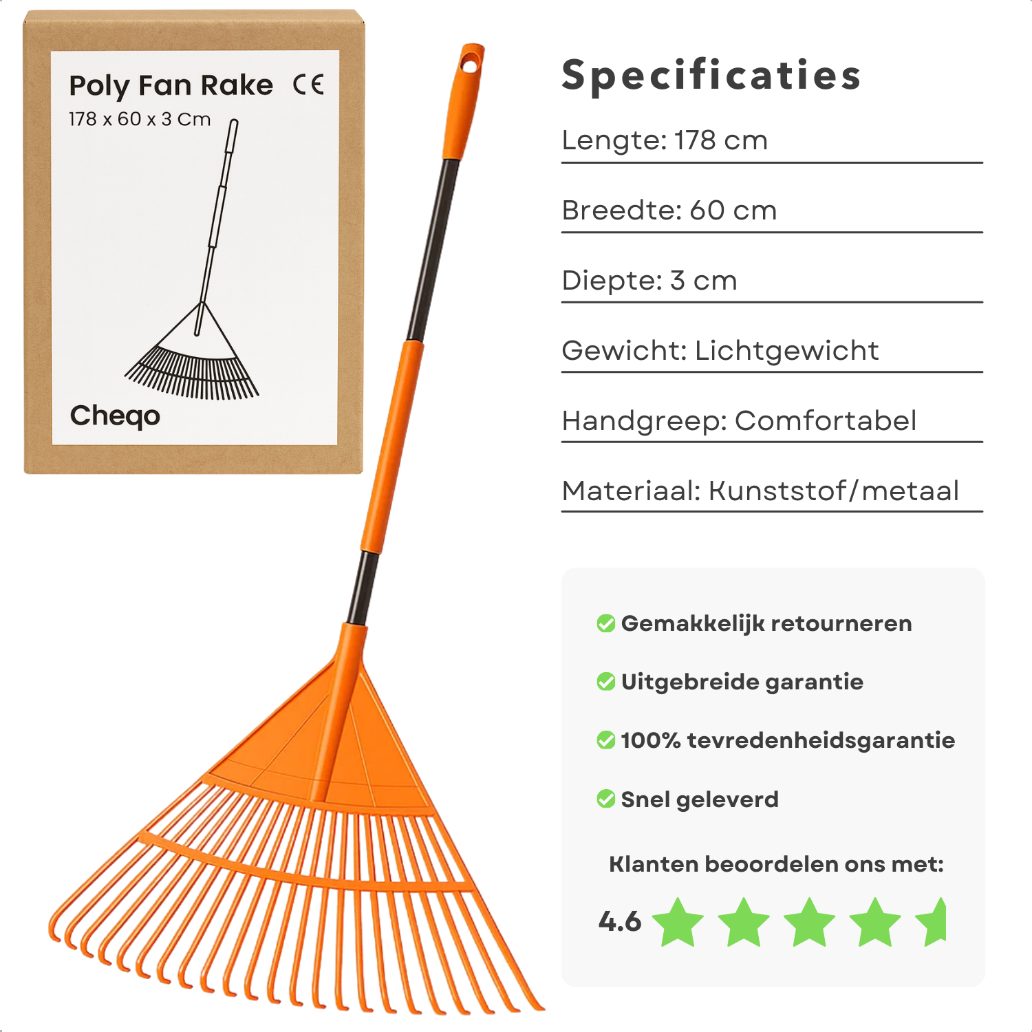 Cheqo® Bladhark - Tuinhark - Comfortabele Handgreep - Terugverende Hark - Bladeren Verzamelen - Gras en Tuinafval - Tuinonderhoud - Ergonomisch Ontwerp - Tuinier Gereedschap - Betrouwbare Hark