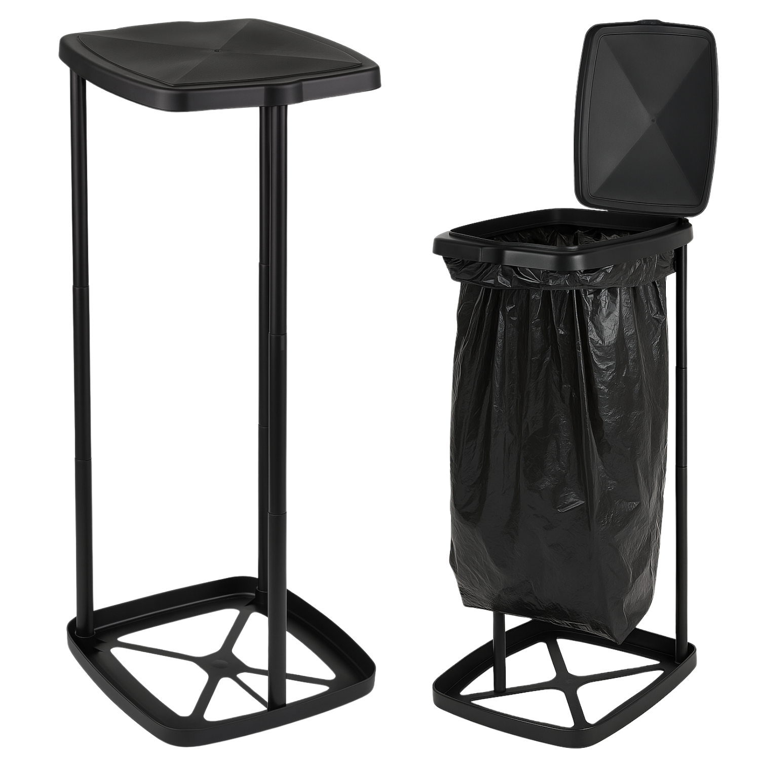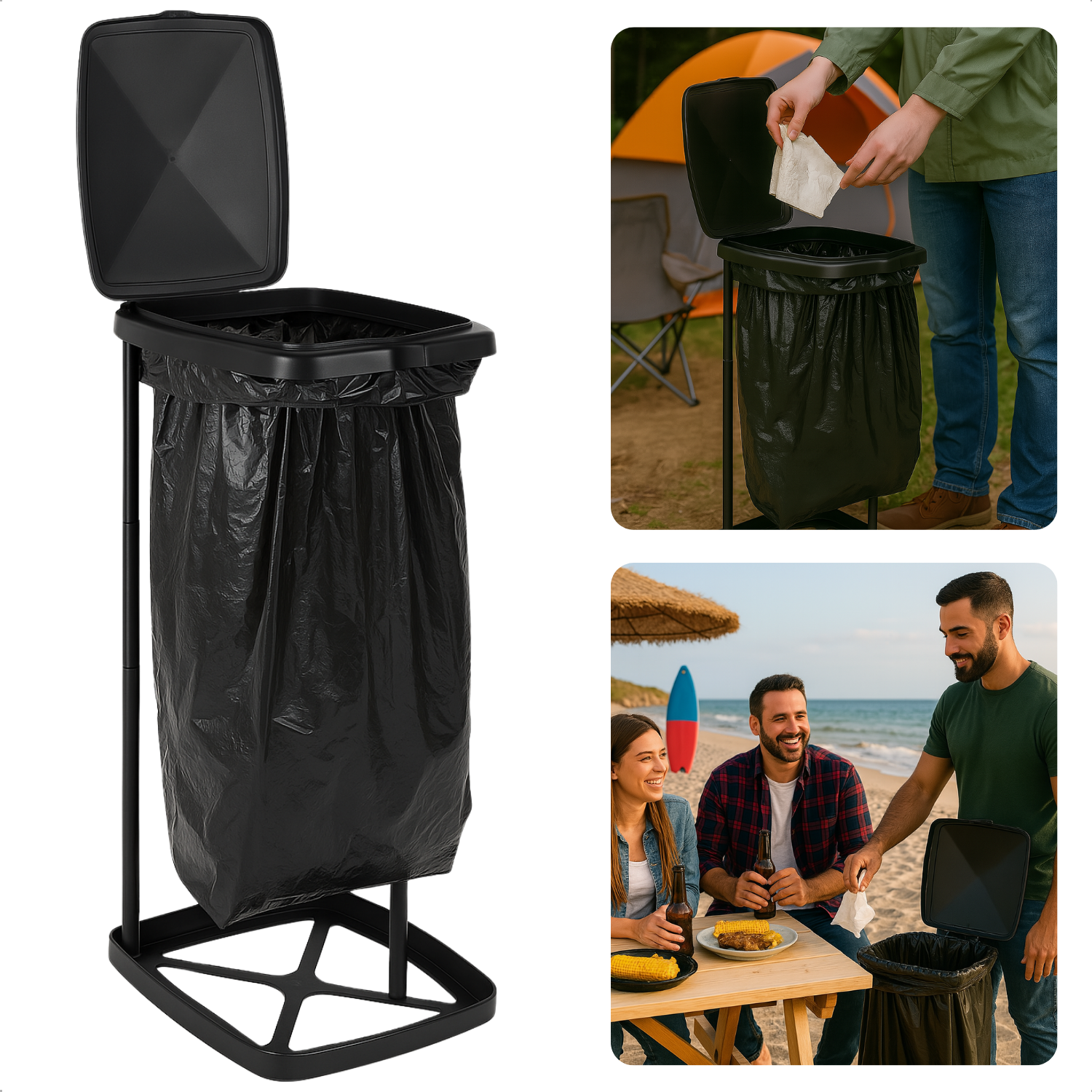 Cheqo® Camping Vuilniszakhouder 60L – Opvouwbare Vuilniszak Houder met Deksel – Lichtgewicht & Stevig – Kunststof en Metaal – Vuilniszakhouder voor Buiten, Tuin, Festivals & Kamperen – Inklapbare Afvalzakhouder Zwart