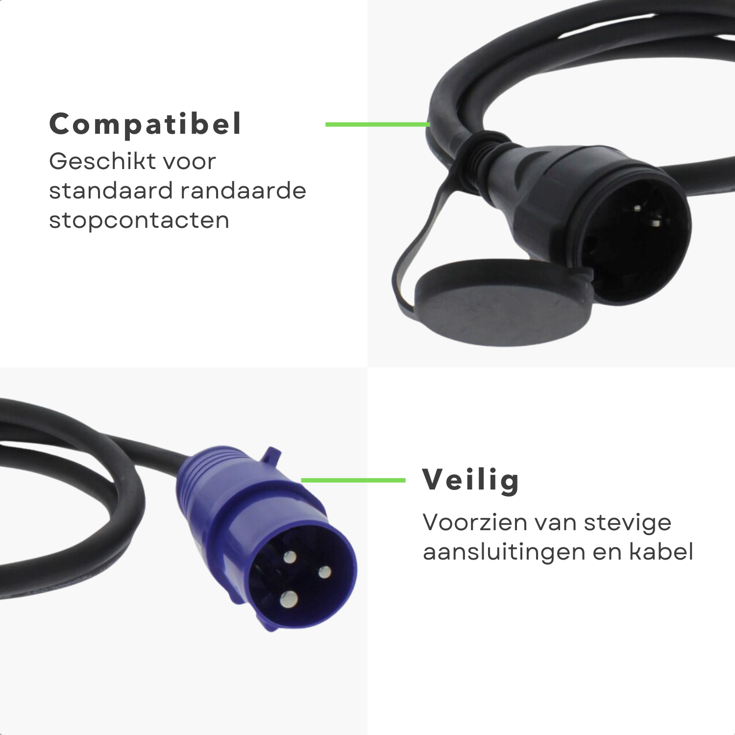Cheqo® CEE Verloopstekker - Camping Verloop - CEE Stekker - Adapter - 1.5m Randaarde Adapter - Spatwaterdicht voor Camping