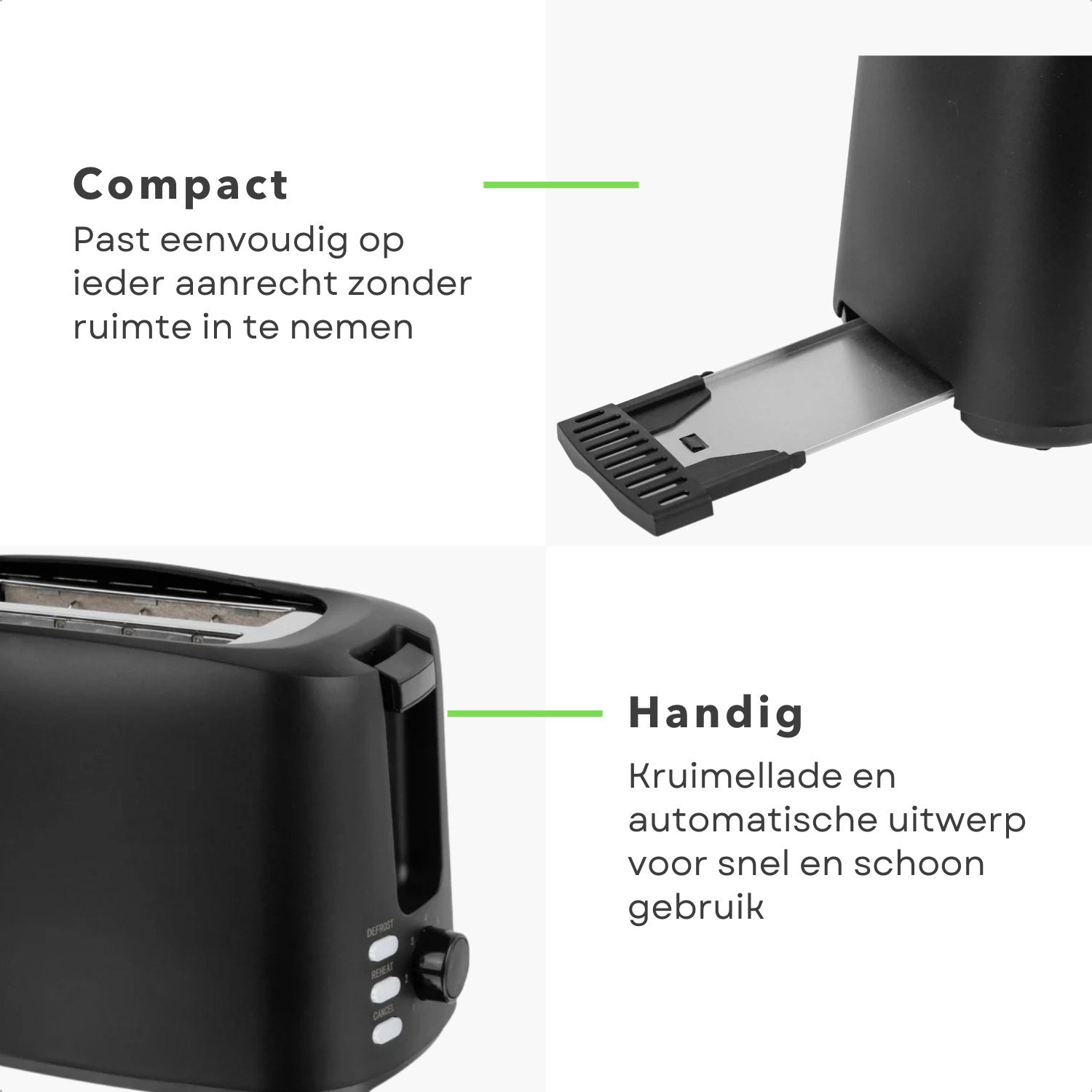 Cheqo® Compacte Broodrooster – Toaster – Brood Rooster – 7 Niveaus – Stopknop – Opwarmfunctie – Ontdooistand – Indicatielampje – Automatische Uitwerp – Kruimellade – Anti-Slip Voetjes - Broodtoaster - Brood Toasten