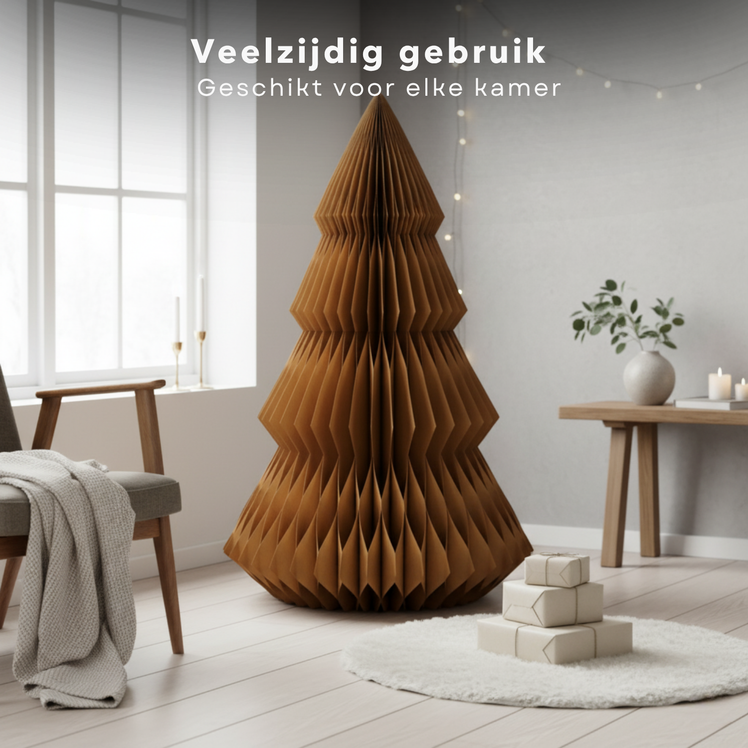 Cheqo® Decoratieve Kerstboom - Papieren Kerstboom - Bruine Kerstboom - Kerstboom Design - Unieke Kerstdecoratie - Vouwbare Kerstboom - Milieuvriendelijke Kerstboom - Kerstboom Voor Binnen - Stijlvolle Kerstdecoratie