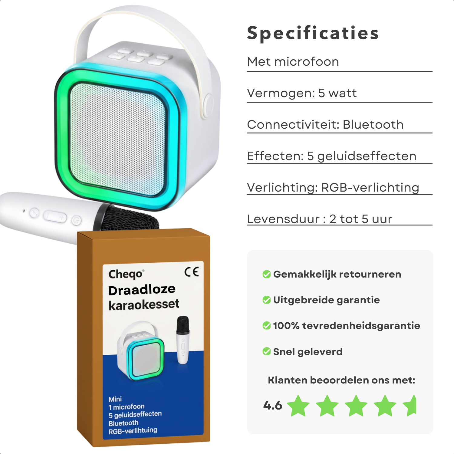 Cheqo® Draadloze Karaoke Set - Karaoke Set Mini - Compacte Karaoke Set - Draadloze Microfoon - RGB-Verlichting - Karaoke Voor Kinderen - Karaoke Voor Volwassenen - Bluetooth - AUX- USB - Party Speaker - Bluetooth Speaker