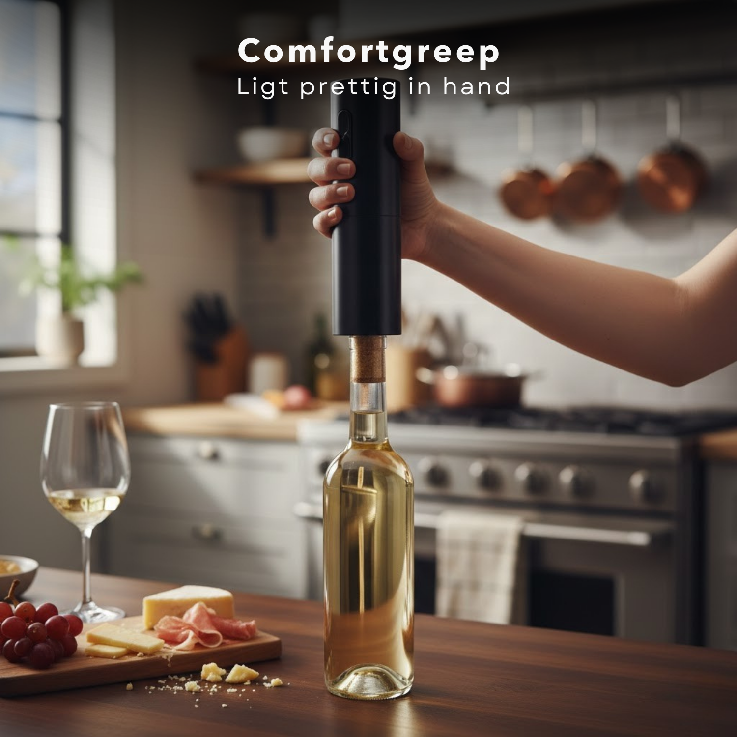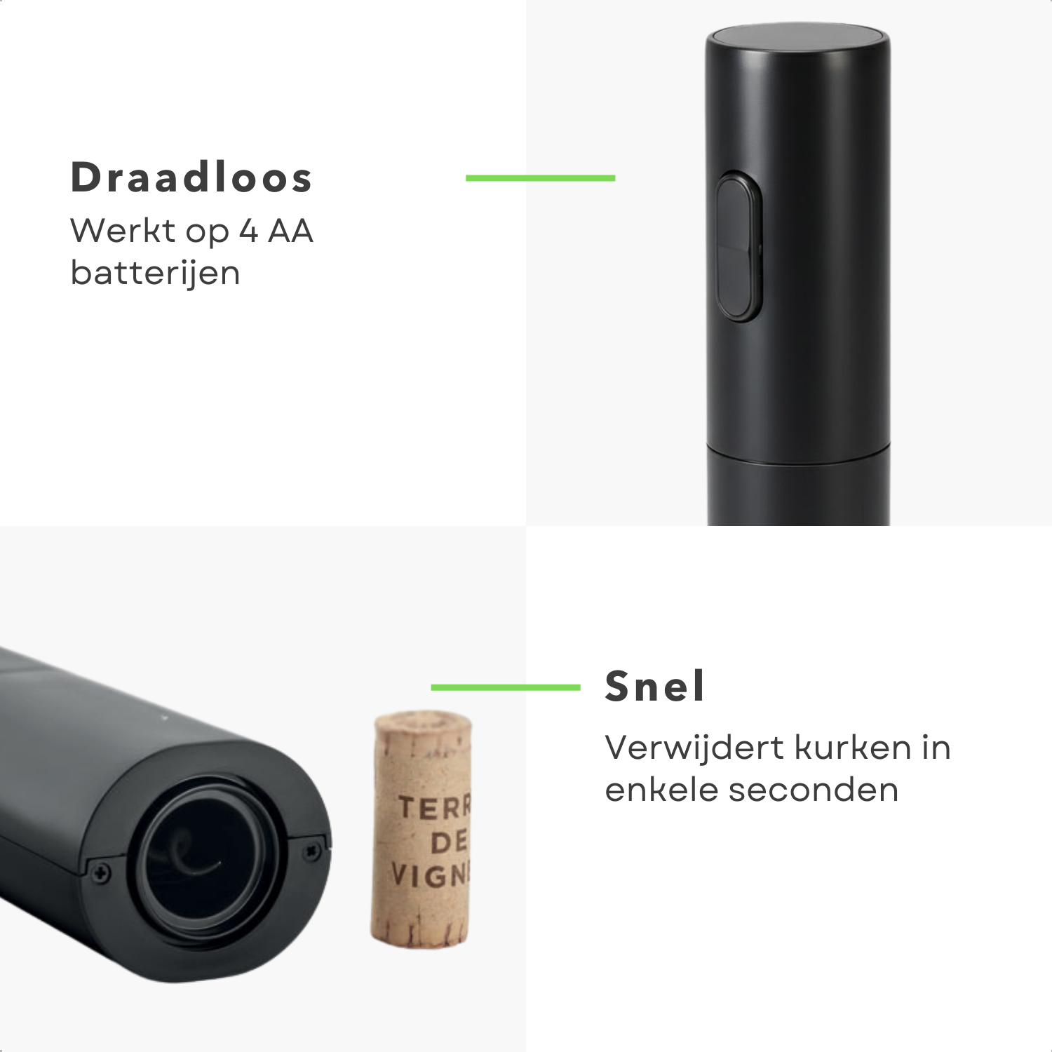 Cheqo® Elektrische Kurkentrekker - Elektrische Wijnopener - Automatische Kurkentrekker - Automatische Wijnopener - Wijnopener Elektrisch - Elektrische Flesopener - Wijnflesopener Elektrisch - Elektrische Kurkentrekker Zwart