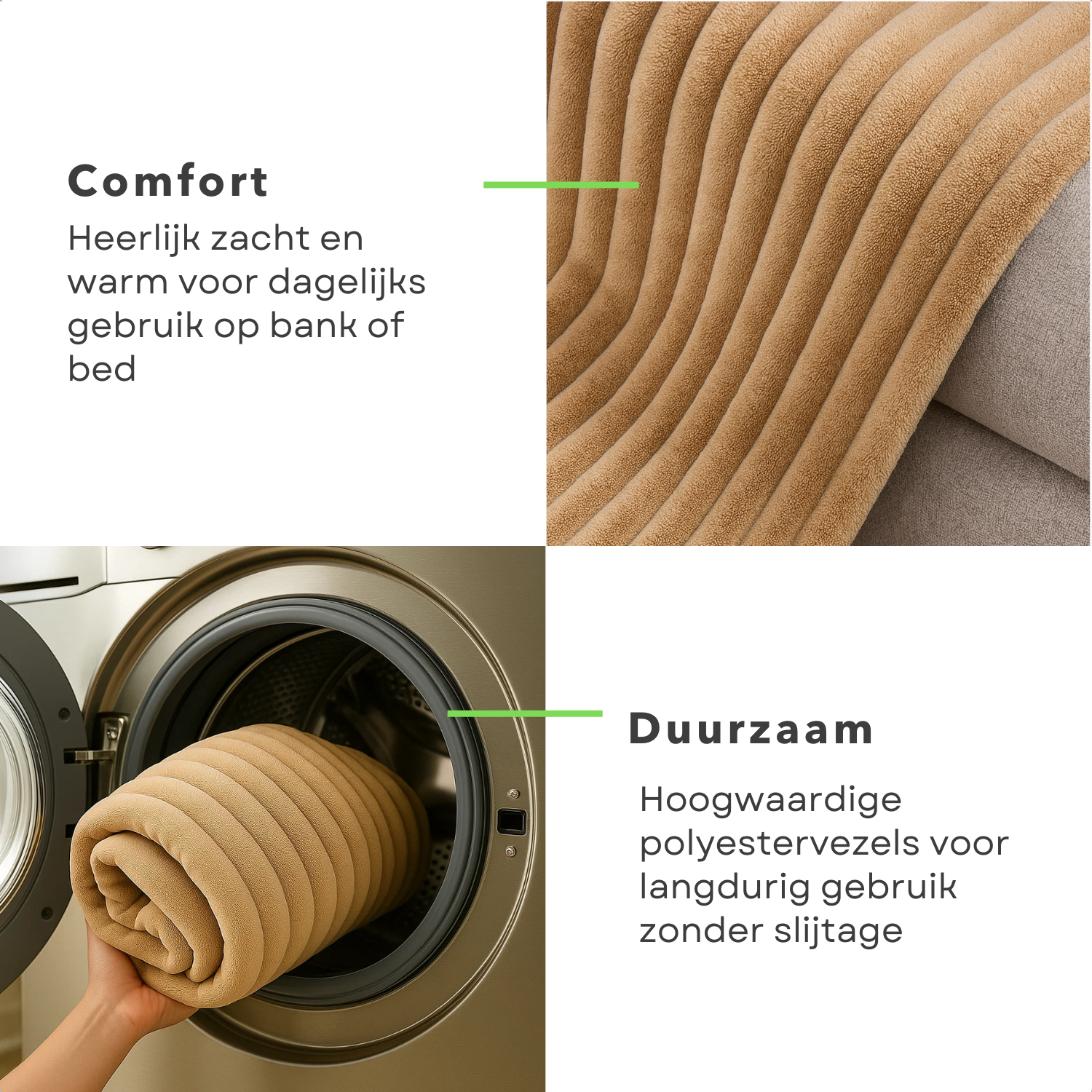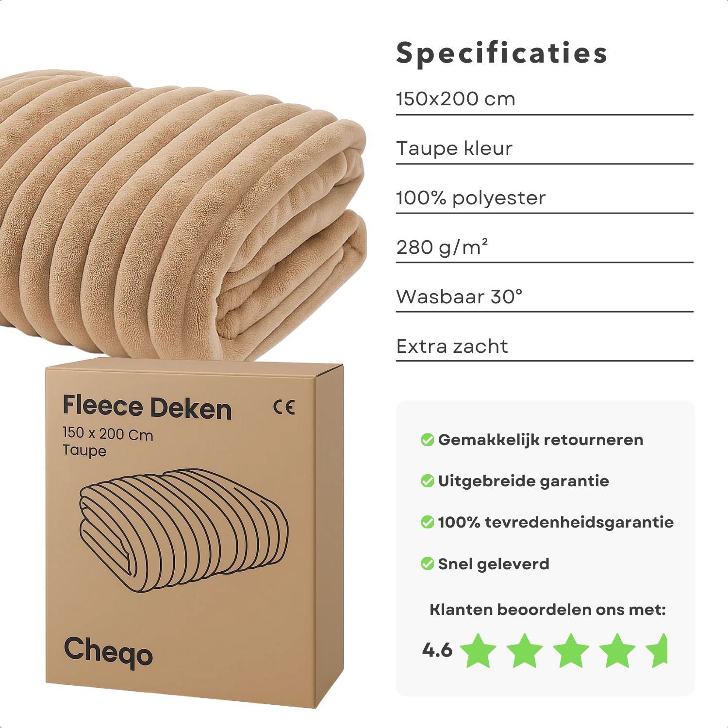 Cheqo® Fleece Deken - 150x200 cm - Dekentje - Taupe Kleur - 100% Polyester - Wasbaar Op 30 Graden - Fleece Plaid