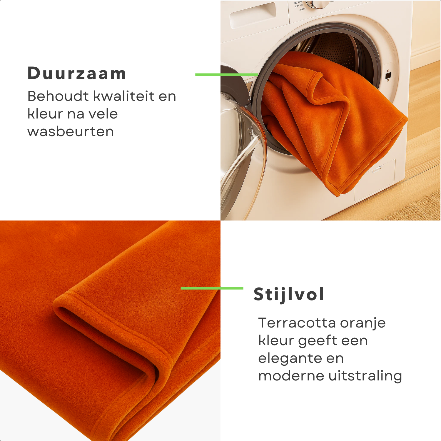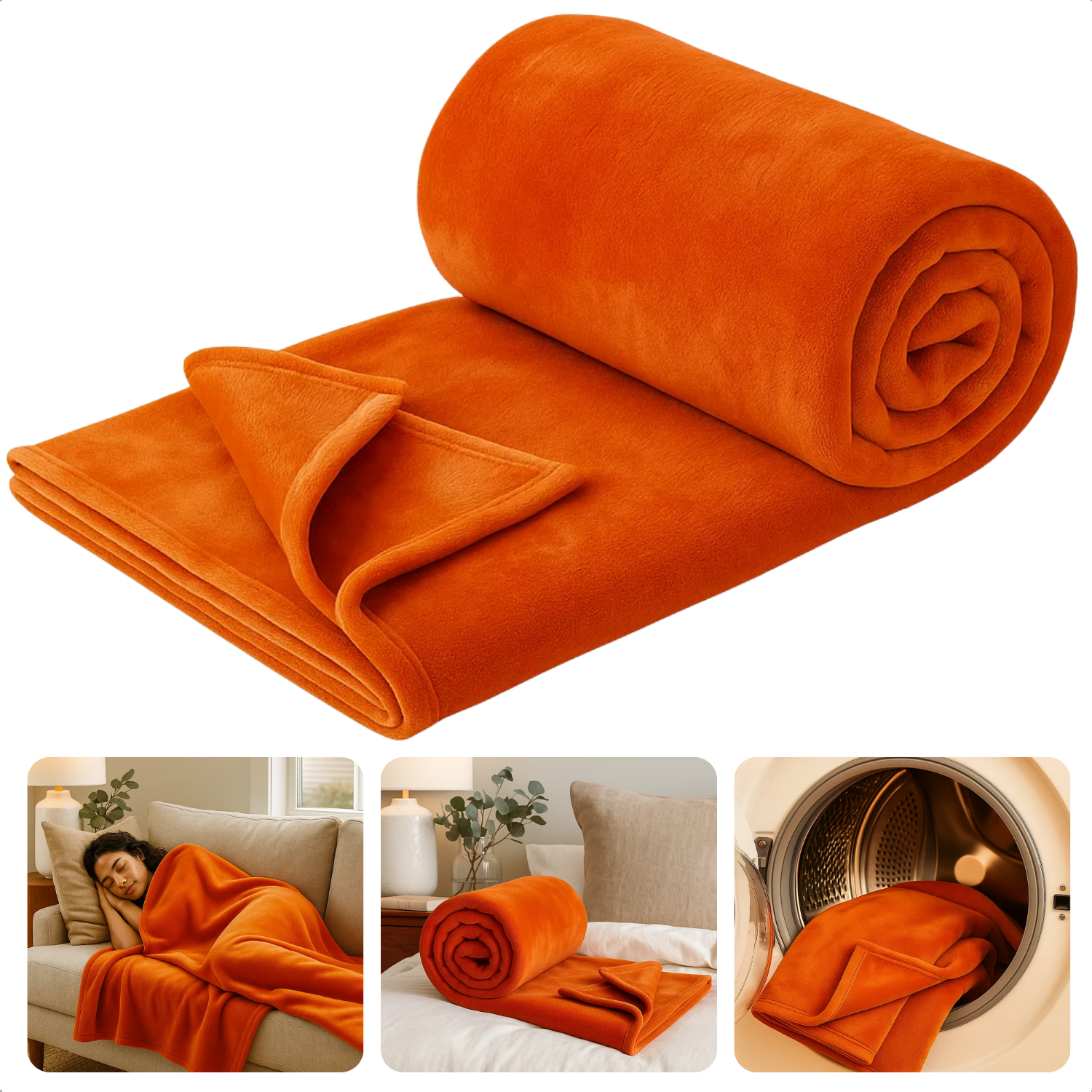 Cheqo® Fleece Deken - Plaid Flannel - Terracotta Oranje - 150 x 200 cm - Comfortabele Plaid - Zachte Textuur - Hoogwaardig Polyester - Eenvoudig Schoon Te Maken - Dekentje - Duurzame Fleece - Royale Afmetingen - Warme Deken
