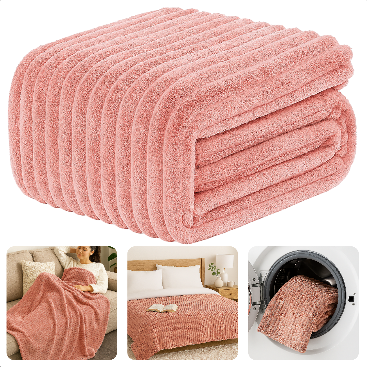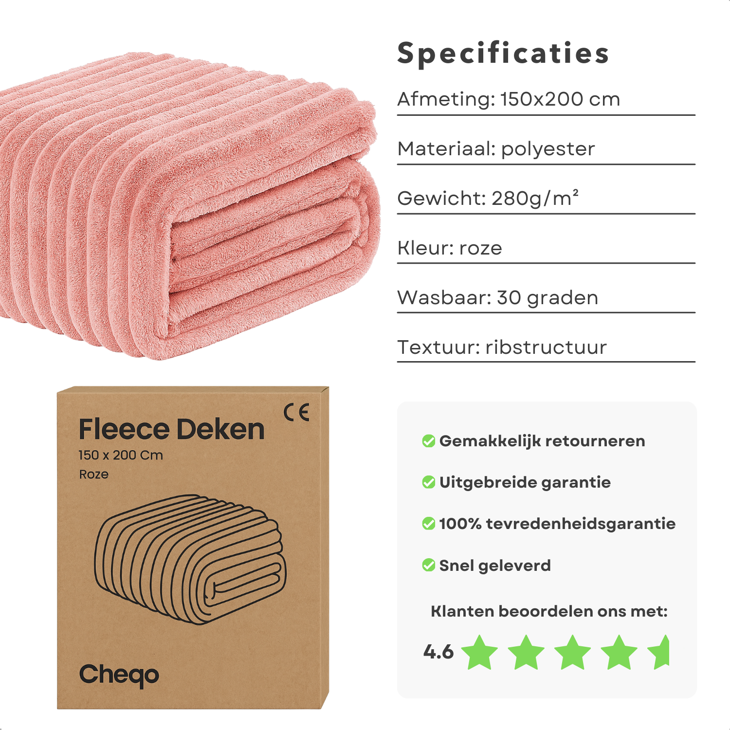 Cheqo® Fleece Deken - Roze Deken - 150x200 cm - Polyester Deken - Wasbaar Op 30 Graden - Super Zacht - Plaid Deken - Woondeken - Warme Deken