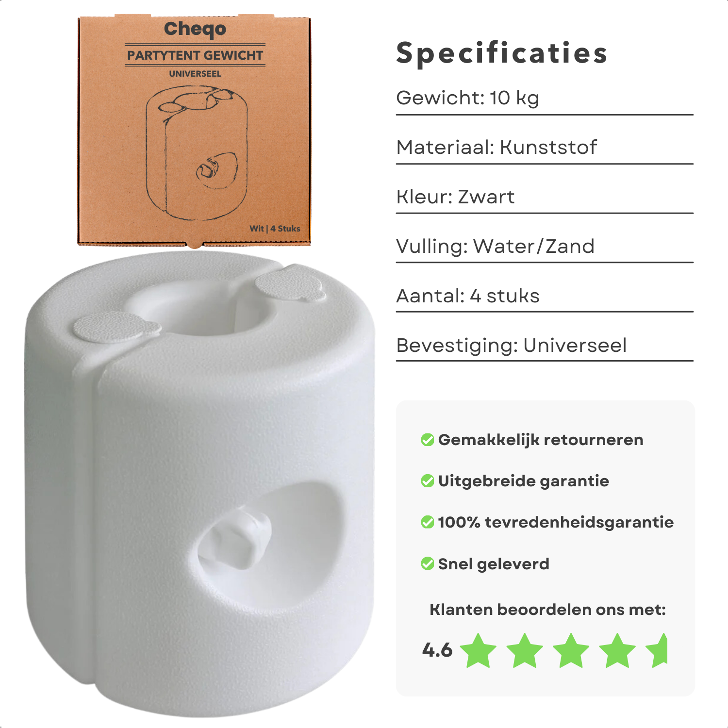 Cheqo® Gewicht voor Partytent en Paviljoen - Vulbare Voet voor Partytent - Weerbestendige Verzwaarde Basis - Kunststof