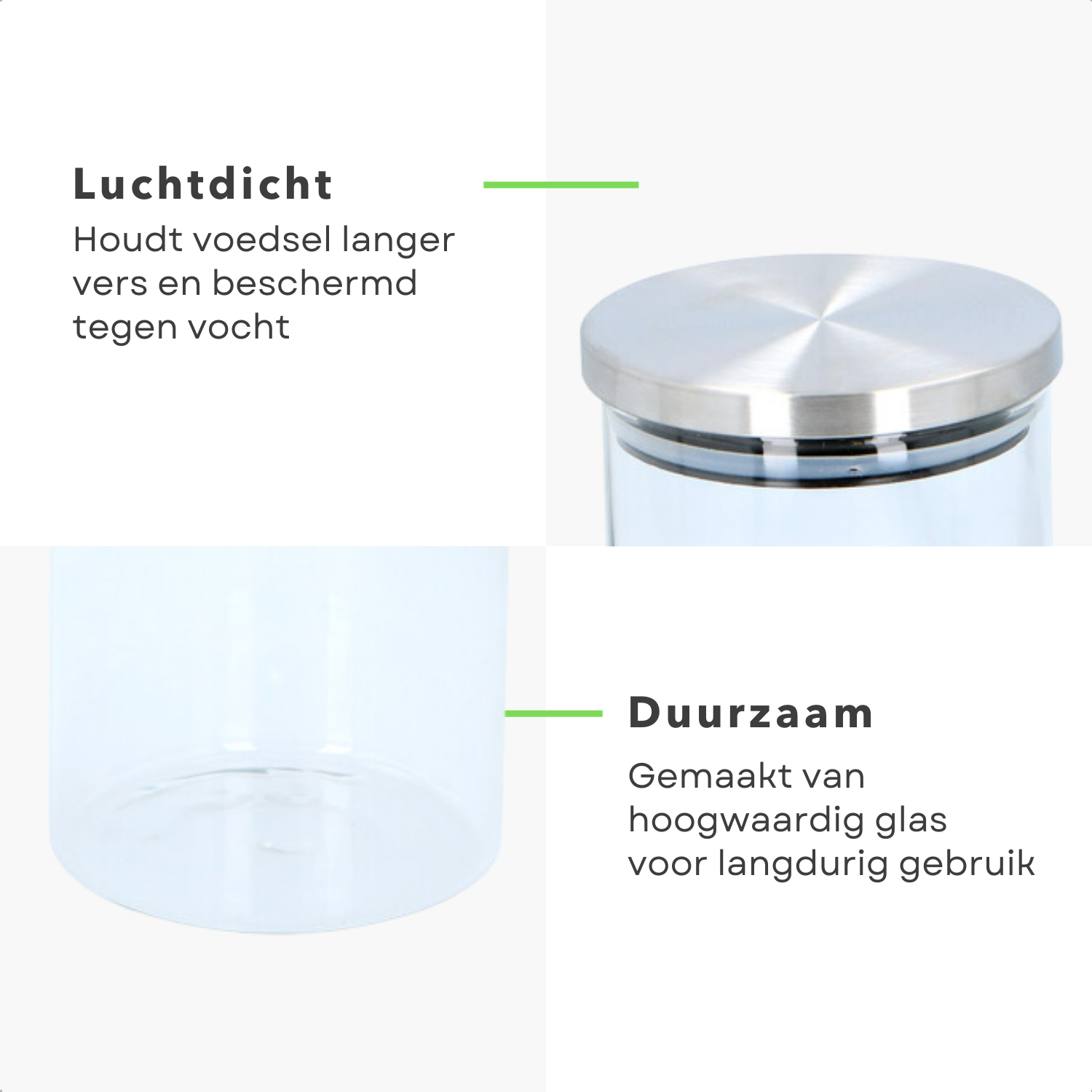 Met hun duurzame glazen constructie en stijlvolle uitstraling zijn deze potten niet alleen functioneel, maar ook een mooie aanvulling op uw keuken. Ze zijn eenvoudig te reinigen en te onderhouden.