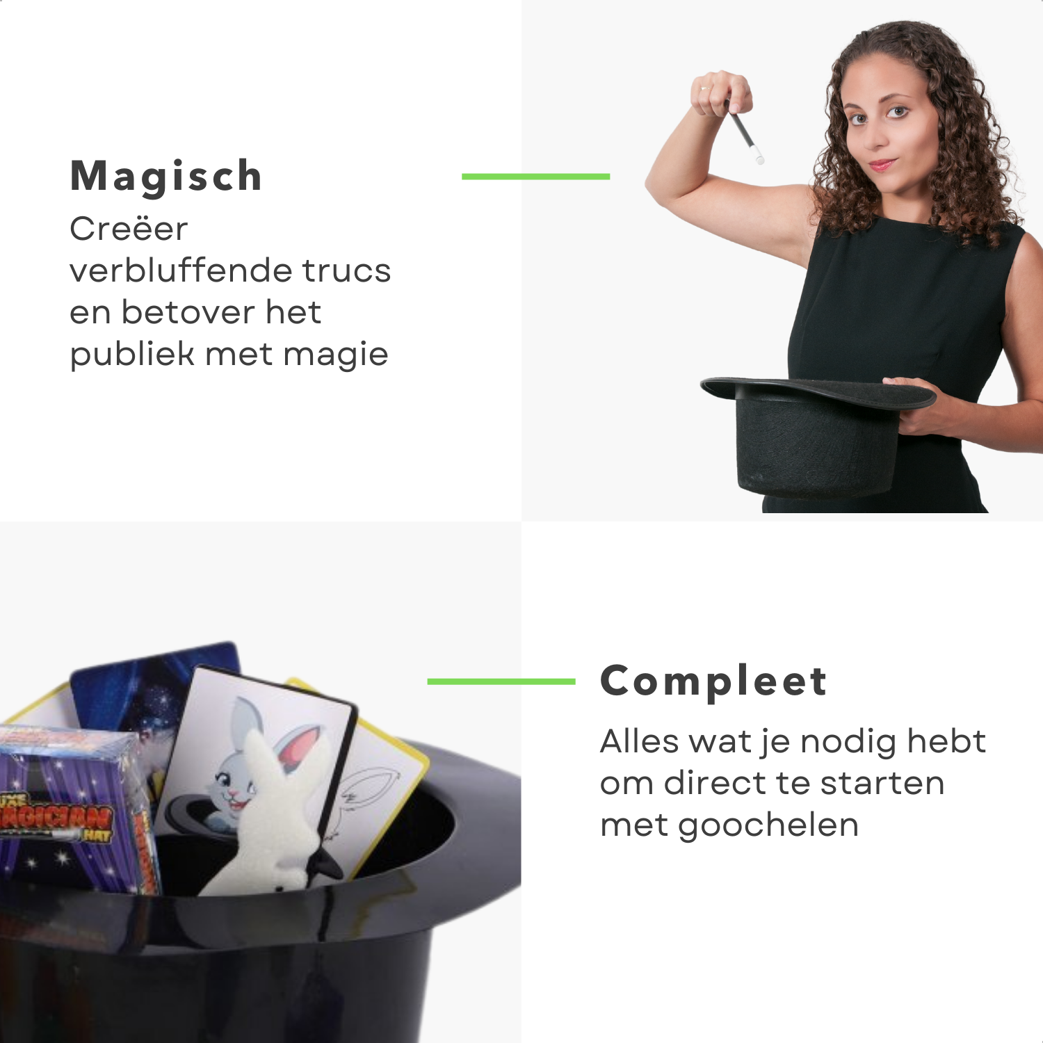 Cheqo® Magische Goocheldoos - 150 Trucs - Magic Tricks Set - Inclusief Goochelhoed en Goochelstok - Met Bekers, Ringen, Ballen, en Meer - Goochelset voor Kinderen - Goochelen