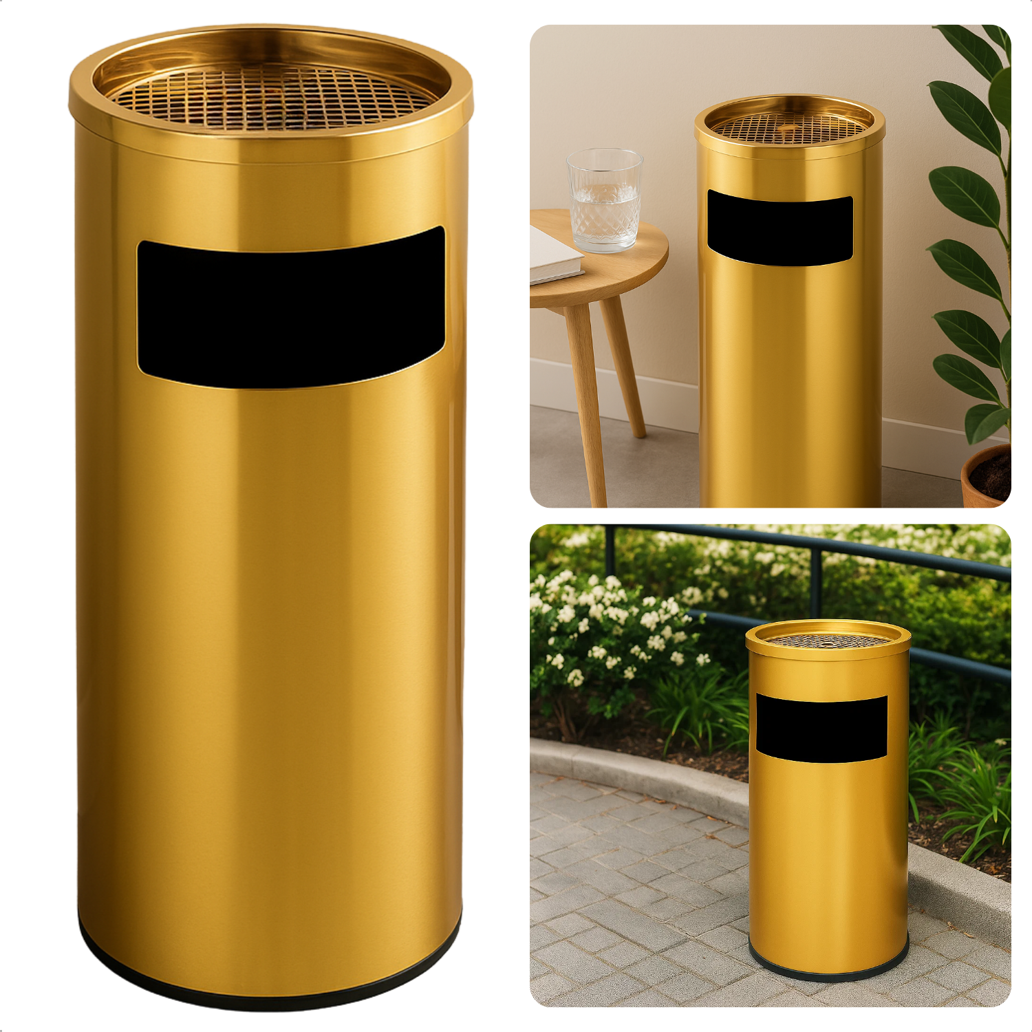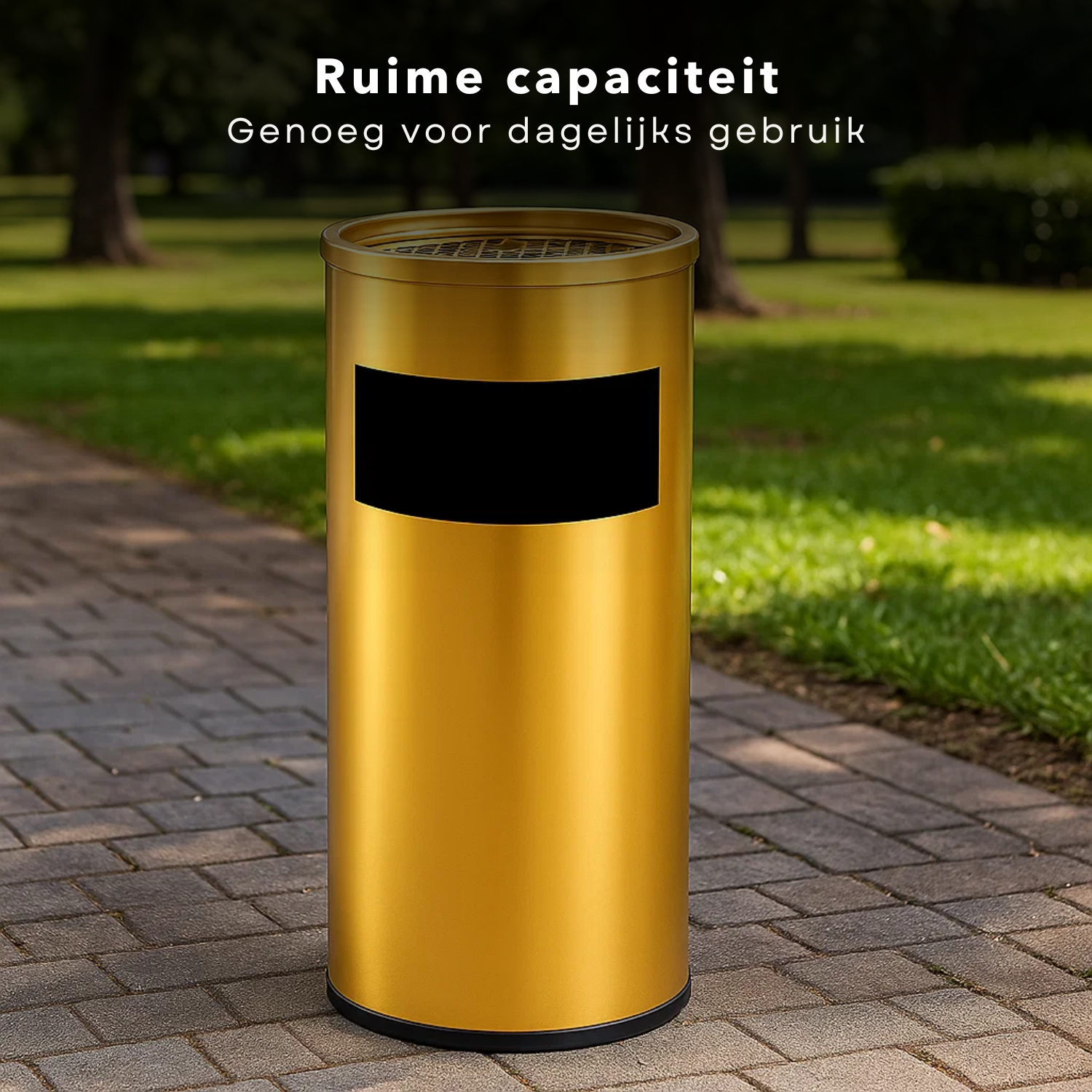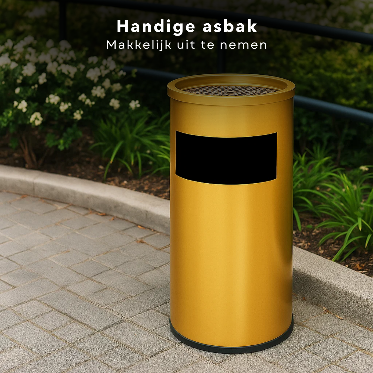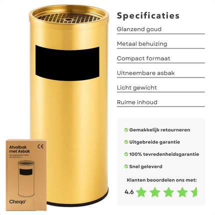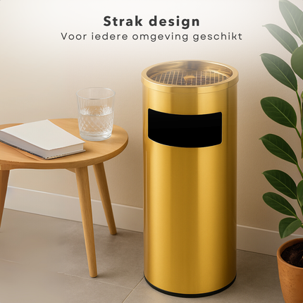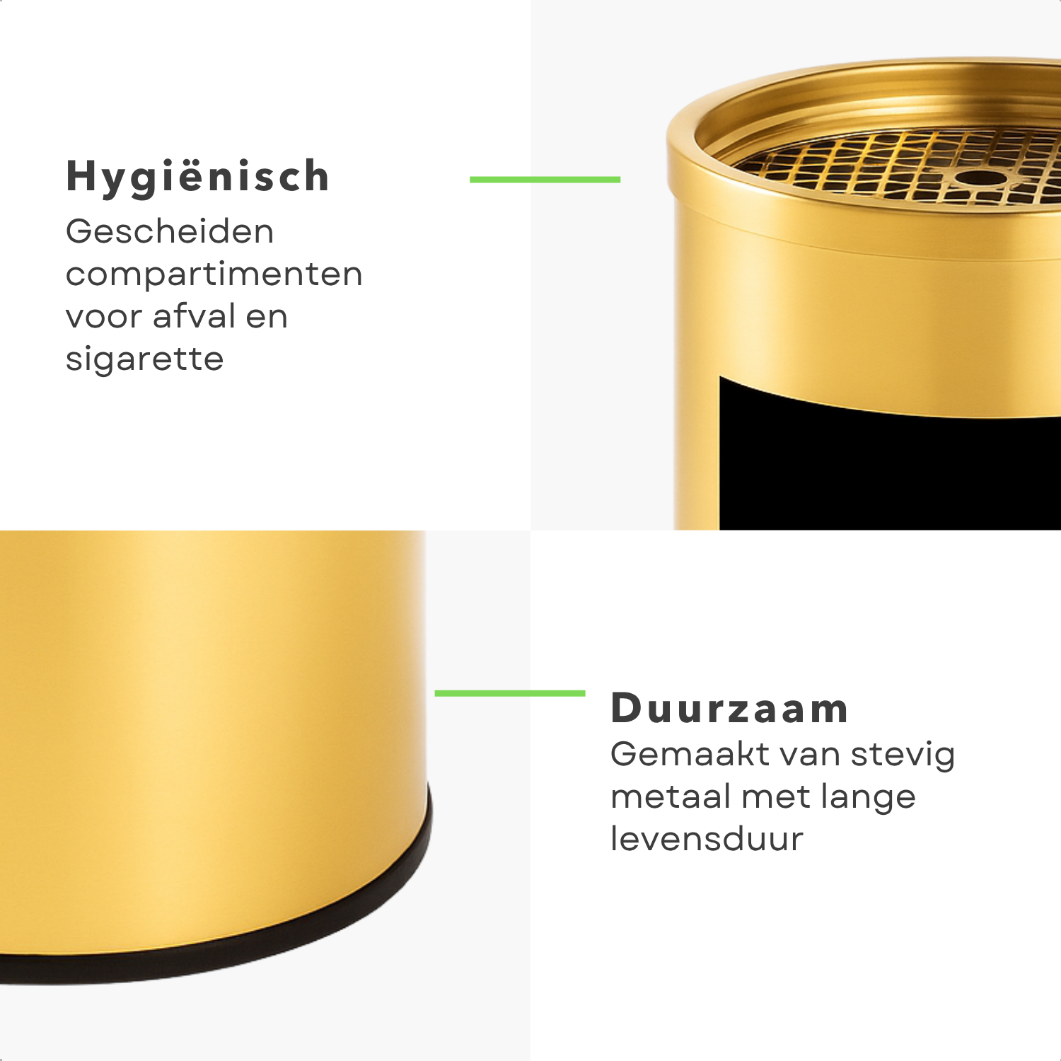 Cheqo® Staande Asbak voor Binnen en Buiten - Gouden Metalen Afvalbak met Asbak - Staand - Glanzend