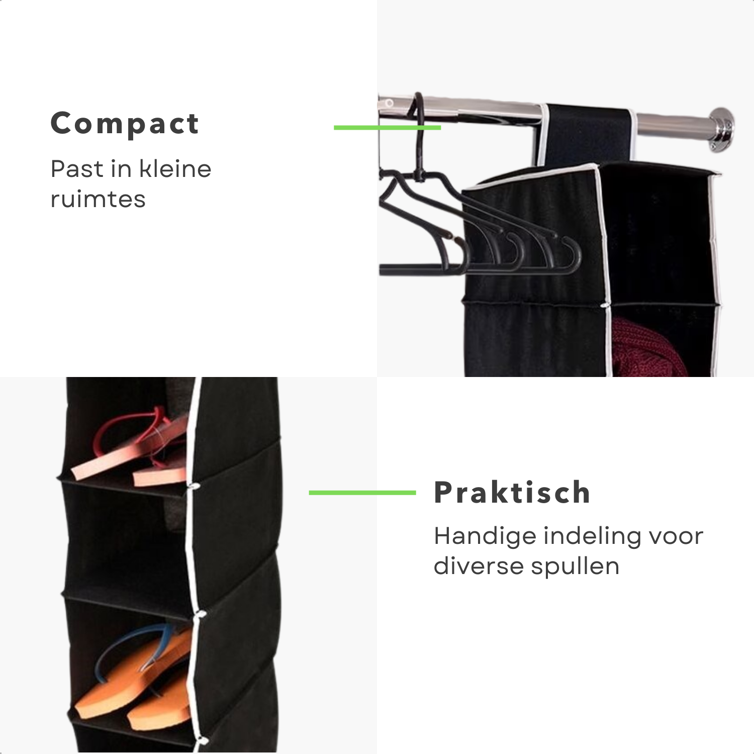 Ontdek de veelzijdigheid van de Cheqo® Hangende Kast Organizer. Deze handige opberger van 15x30x84 cm in stijlvol zwart biedt een... Lees meer