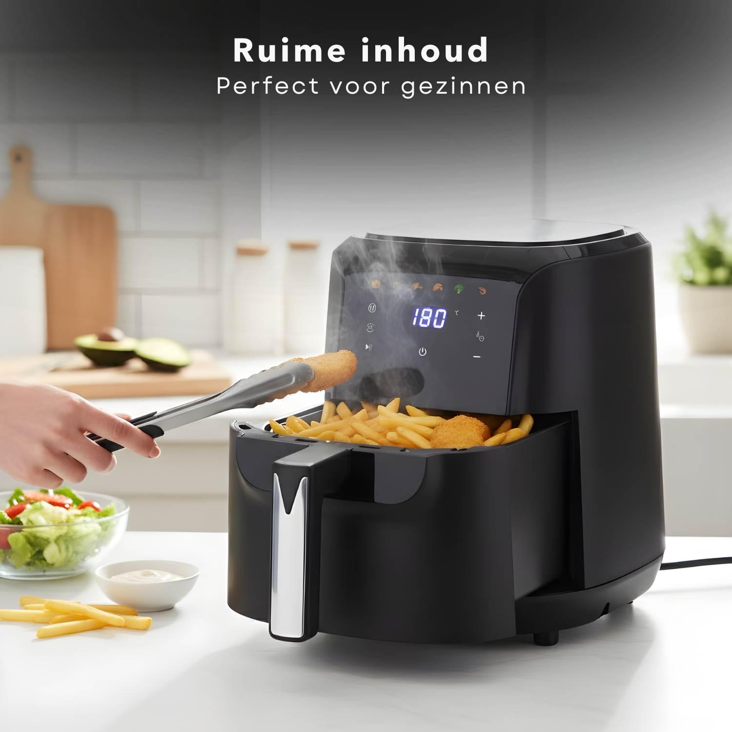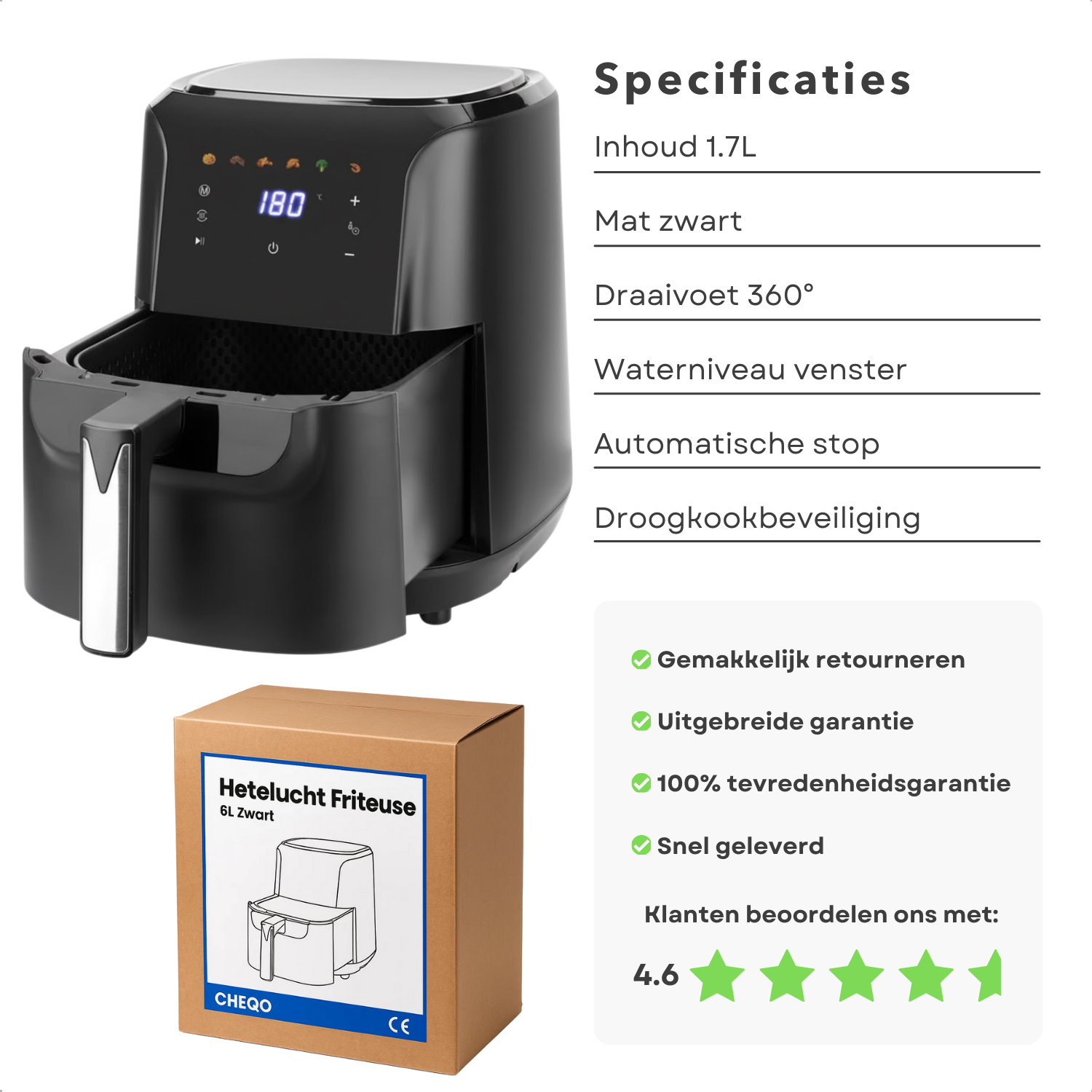 Cheqo® Airfryer - Hetelucht Friteuse - 6 Liter - Snelle Bereiding - Air Fryer - Hetelucht Oven - Timerfunctie - Hete Lucht Friteuse