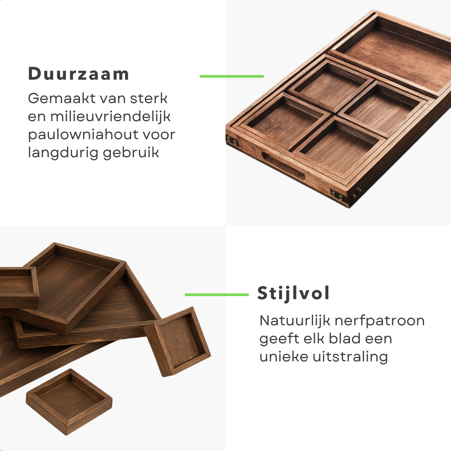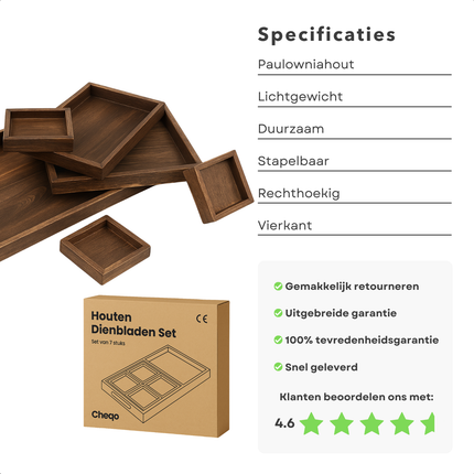 Ontdek de veelzijdigheid van de Cheqo® Houten Dienbladen Set, gemaakt van hoogwaardig paulowniahout. Deze set van zeven dienbladen biedt een... Lees meer