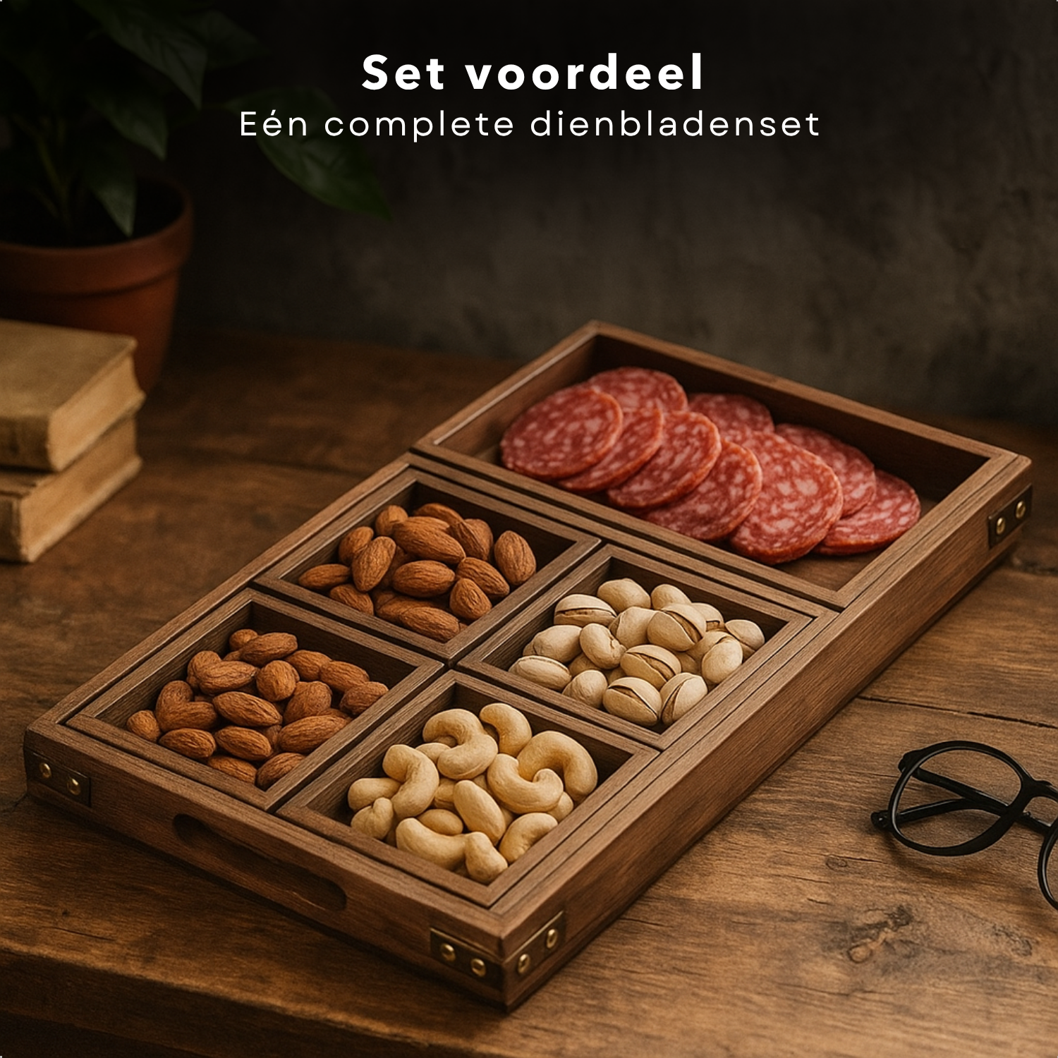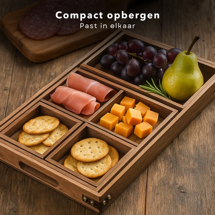 Cheqo® Houten Borrelplank Set - Tapasplank - Hapjesplank - Serveerplateau - Dienbladen Set - Duurzaam Hout