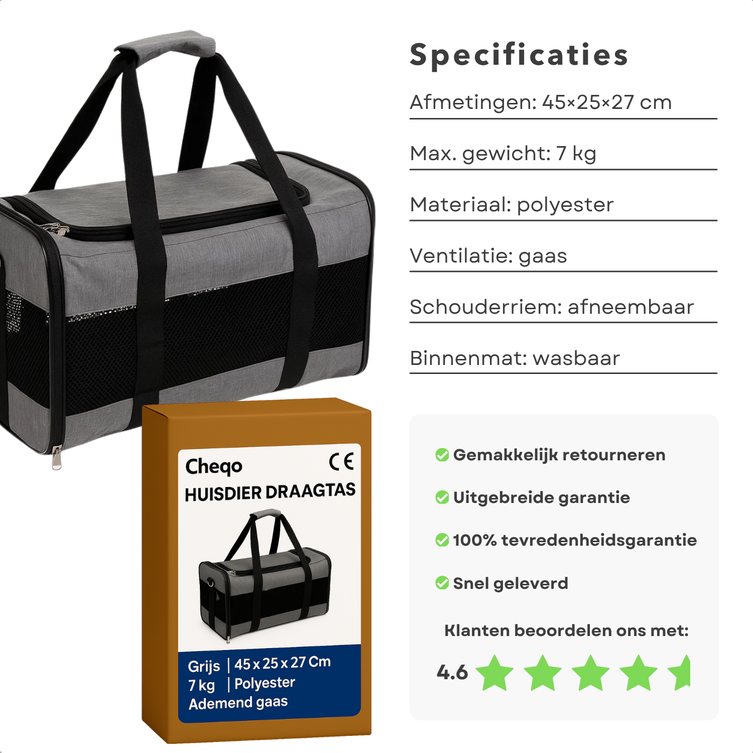 Cheqo® Huisdier Draagtas - Kleine Huisdieren - Schouderriem En Handgrepen - Huisdier Tas - Tas voor Huisdieren - Wasbare Mat - Lichtgewicht Ontwerp - Compact Op Te Bergen - Polyester Met Ademend Gaas - Tot 7 kg