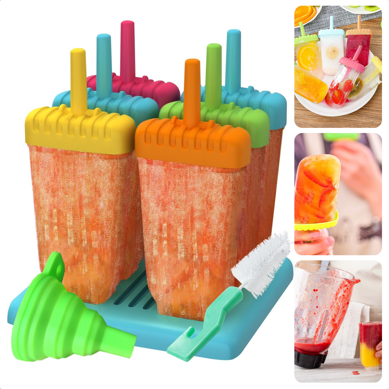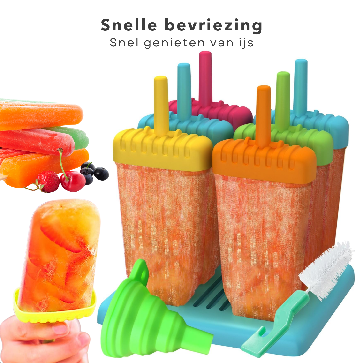 Cheqo® IJsjesmaker Siliconen - Waterijsjes Vormen - Herbruikbare IJsjesvormpjes - Ijsmaker - Zelf Ijsjes Maken - IJslolly - Voor 6 IJsjes - Met Houder