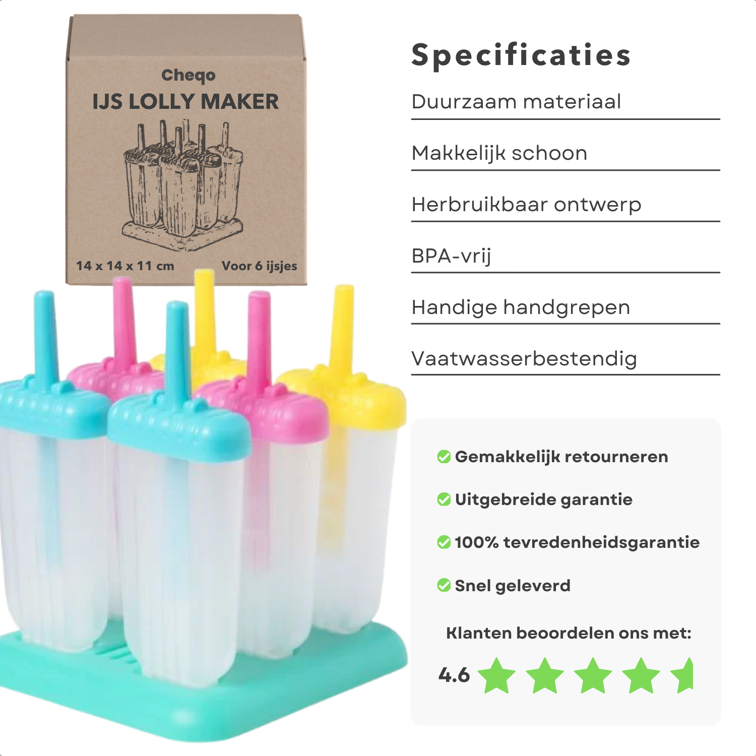 Maak de lekkerste ijsjes thuis met de Cheqo® IJsjesmaker! Deze set is perfect voor het creëren van zes heerlijke ijsjes... Lees meer