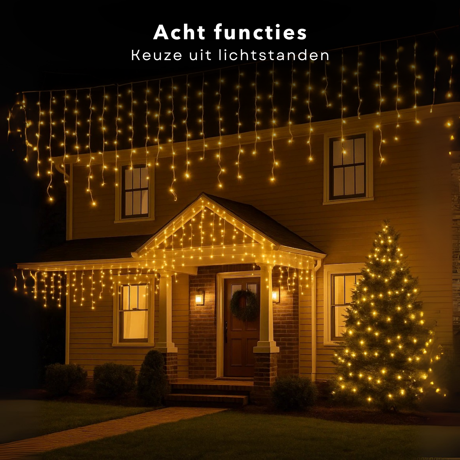 Cheqo® Ijspegel Verlichting - Lichtgordijn - Kerstverlichting Buiten - Kerstverlichting Binnen - 180 LED - Warm Wit - 6 Meter - 8 Lichtfuncties - IP44 Adapter - Geschikt Voor Buiten - Groen Snoer - 3 Meter Aansluitsnoer - LED Lampjes