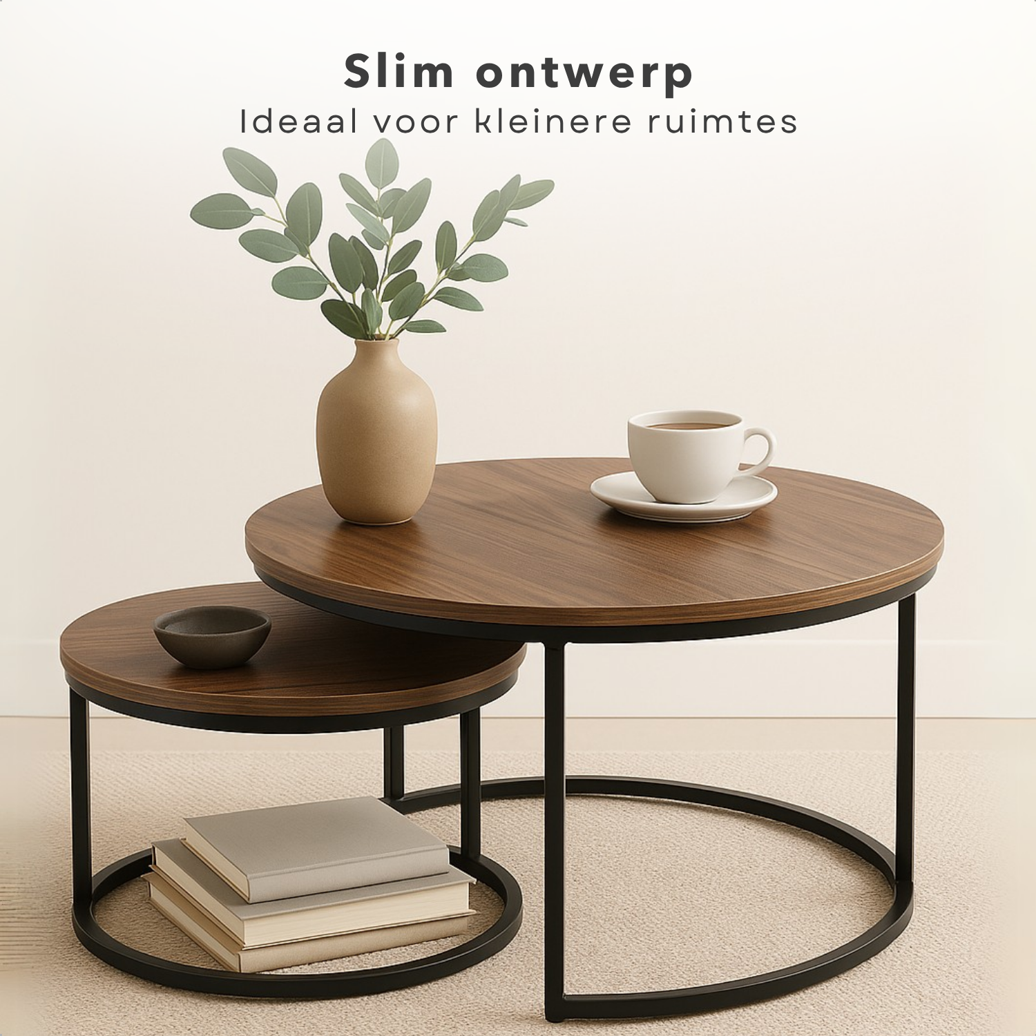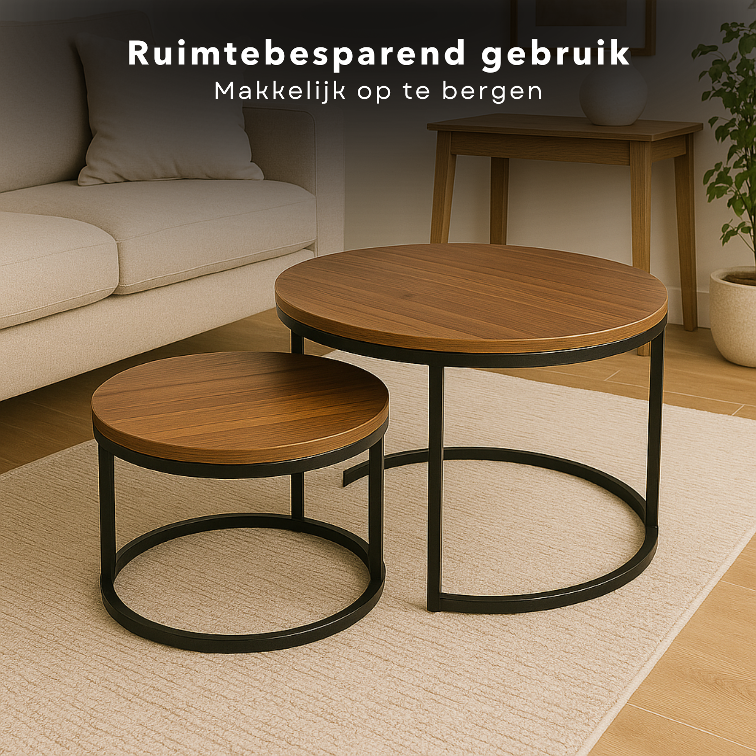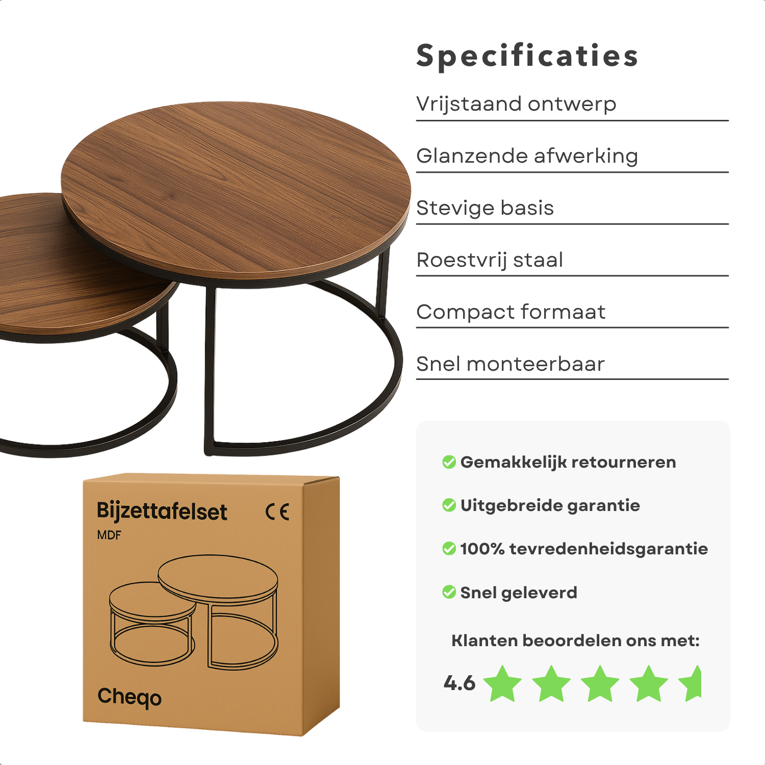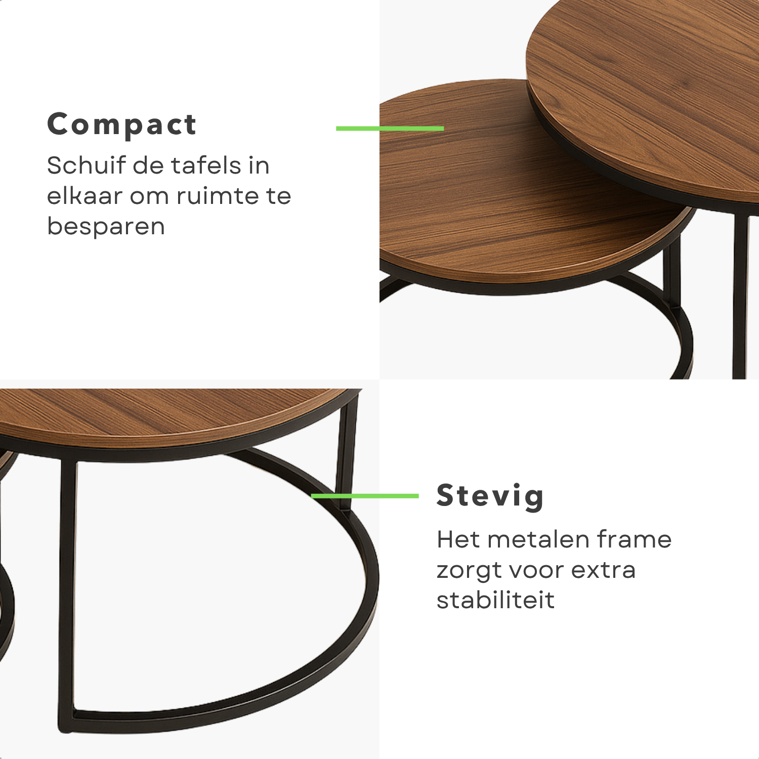 Cheqo® Industriële Bijzettafels Set van 2 - Koffietafel - Bijzet Tafel Set - Tafelset - Salontafel Set - Modern Design - MDF Tafelblad - Metaal Frame