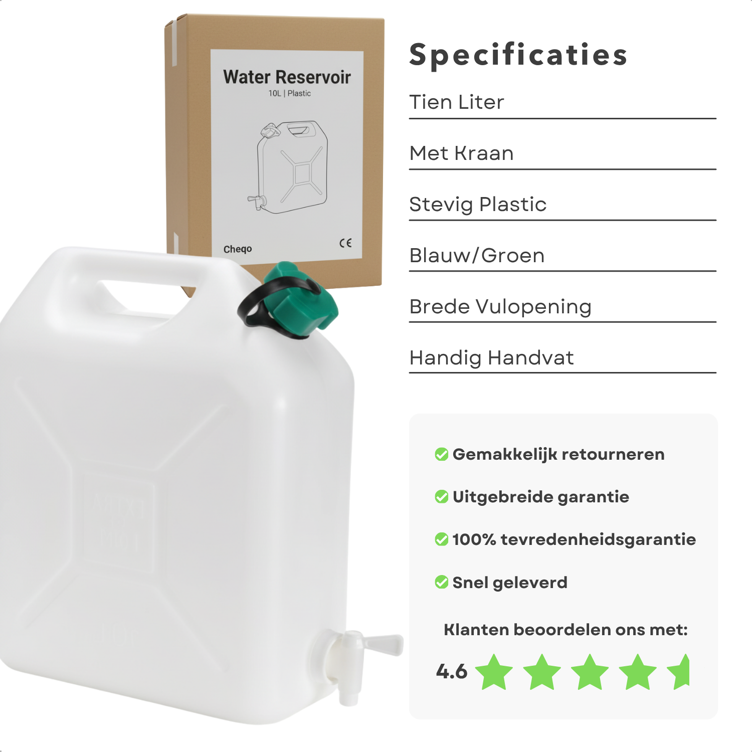 Cheqo® Jerrycan Met Kraan - 10 Liter - Kunststof Jerrycan - Water Jerrycan - Handgreep - Watertank - Transparant - Watertap - Limonadetap