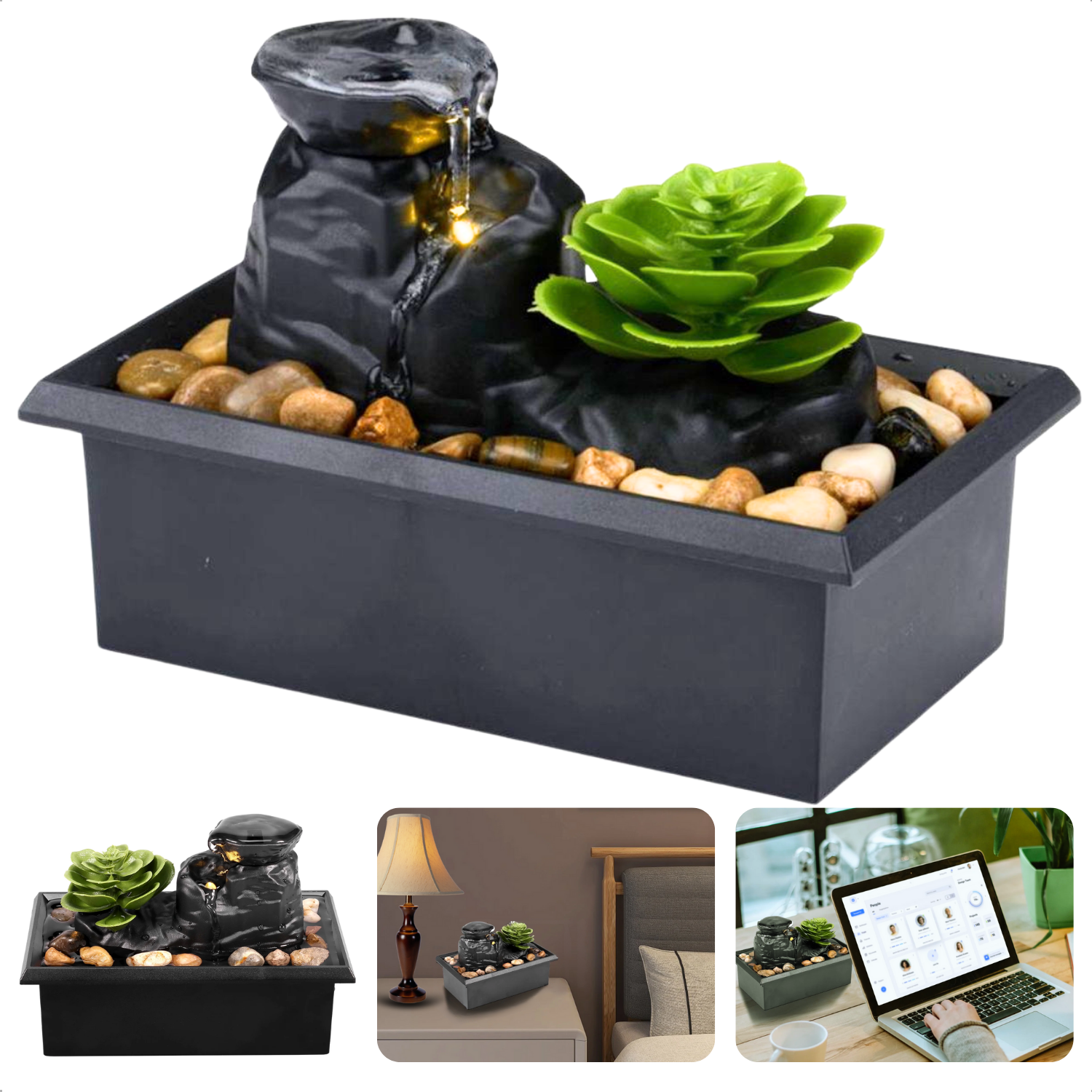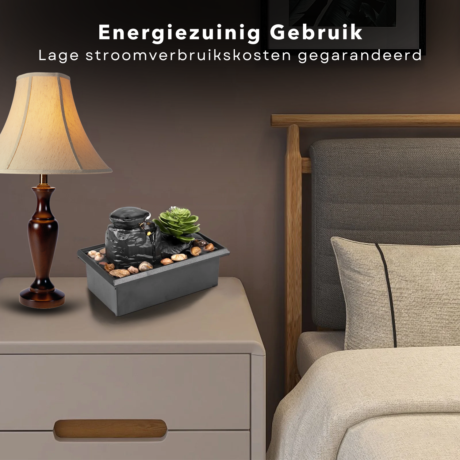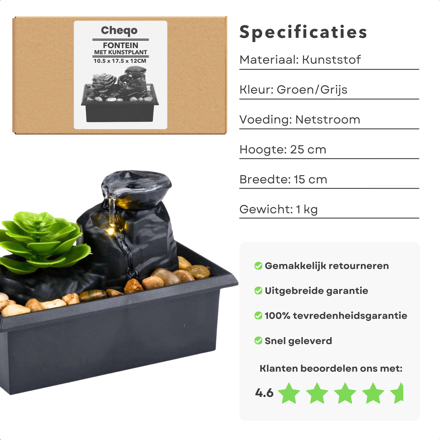 Cheqo® Kamerfontein - Binnenfontein - Rustgevende Zen Sfeer - LED Verlichting - Compact Design - Kunstplant - Tuinfontein - Cascadefontein - Binnenfontein - Fontein - Waterornament