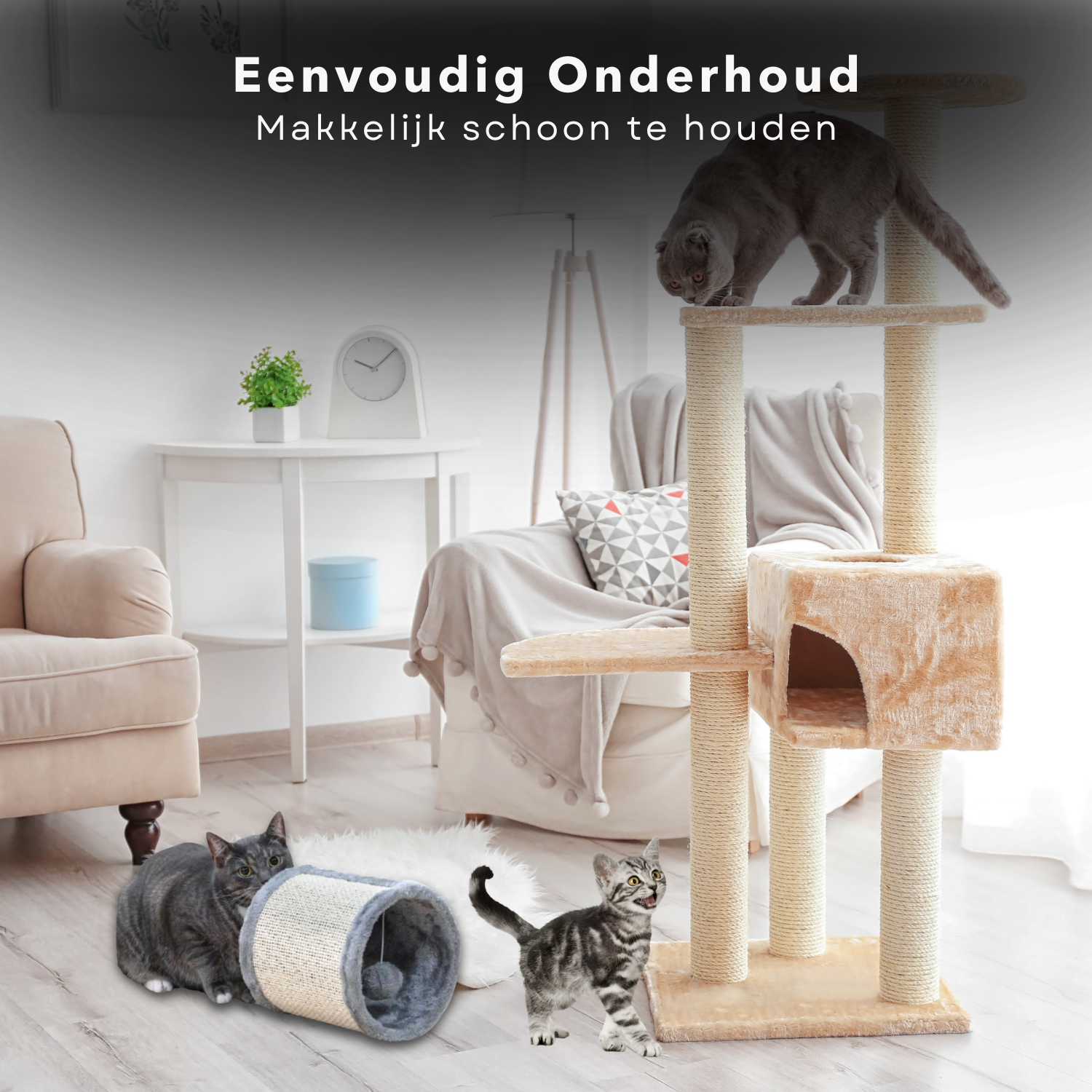 Cheqo® Kattentunnel met Krabfunctie - Krabpaal - Kattenspeelgoed - Interactief Speelgoed met Bal - Sisal Krabton - Duurzaam en Leuk