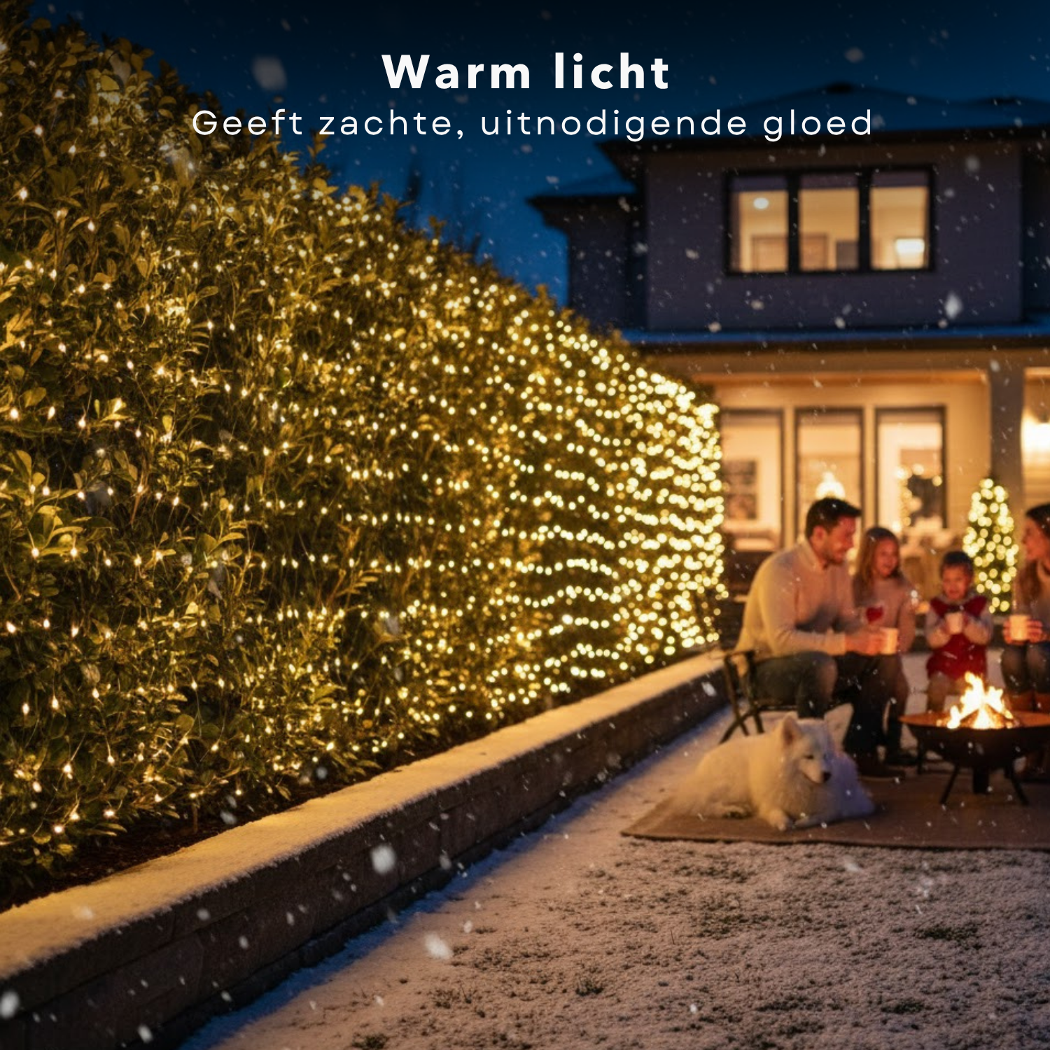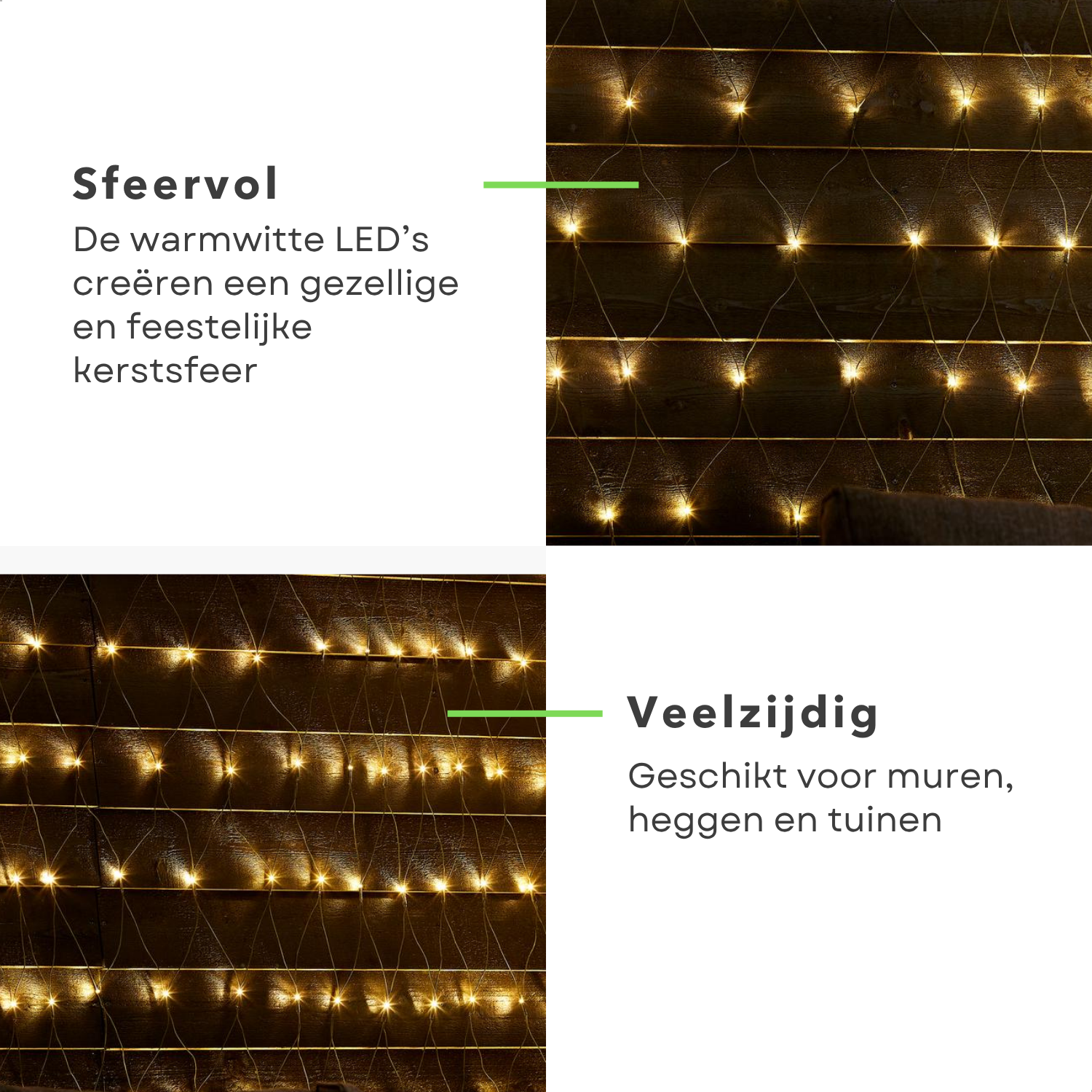 Cheqo® Kerst Netverlichting - Netverlichting Buiten - Warm Wit Licht - 160 LED Lampjes - IP44 - Kerstdecoratie - Kerst Verlichting - 6,5 Meter - Binnen En Buiten - Feestelijke Sfeer - Duurzame Kerstverlichting - LED Netverlichting