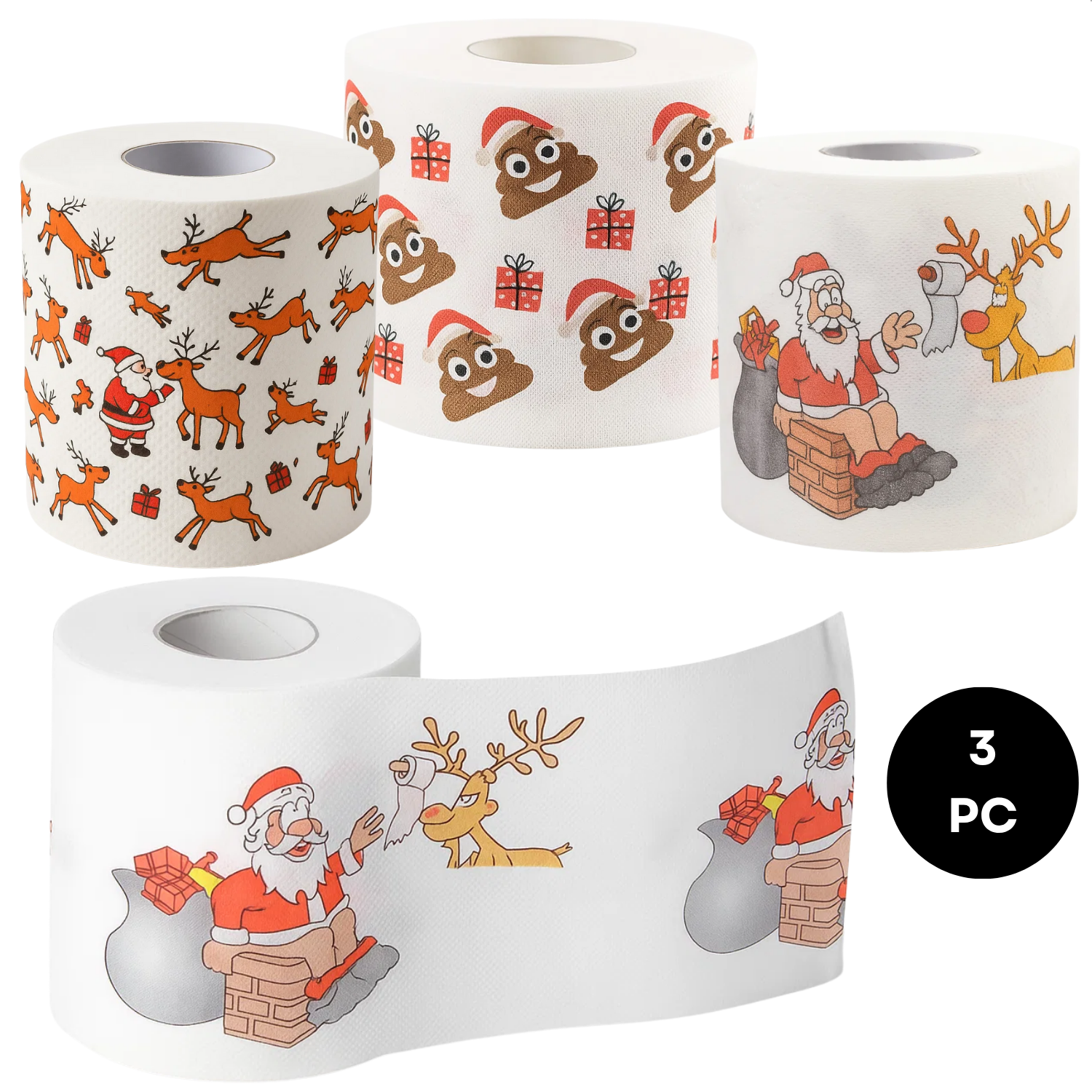 Cheqo® Kerst Toiletpapier - WC Rol Kerst - Grappige Kerst Print - 3 Rollen Toiletpapier - Feestelijk Kerstmotief - Kerstman Papier - Wegwerppapier - Badkamer Decoratie - Kerstfeest Accessoires - Grappige Papieren Rol