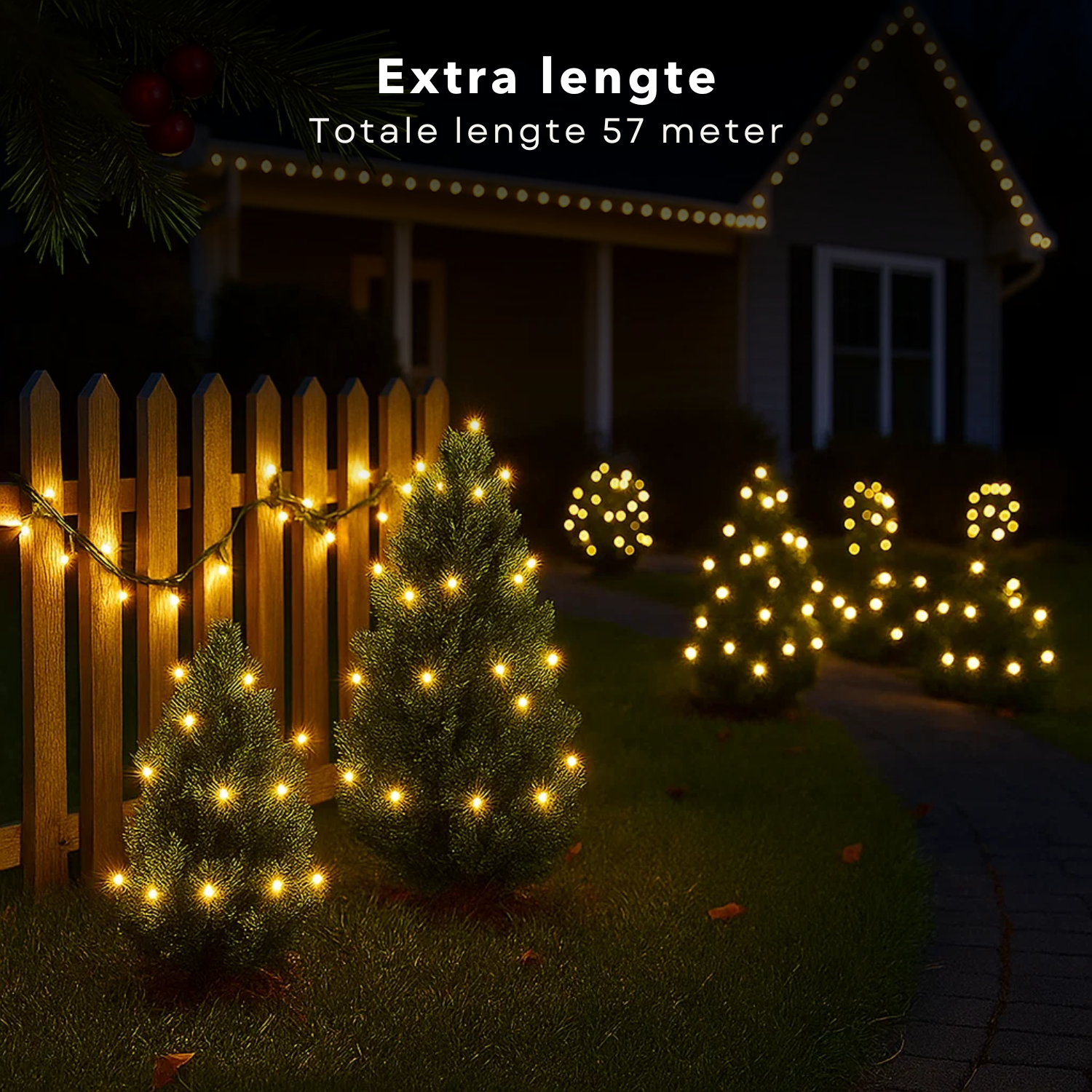 Cheqo® Kerstverlichting Binnen En Buiten - 720 LED Lampjes - Warm Wit Licht - 54 Meter Lichtsnoer - IP44 Beschermklasse - LED Lichtsnoer - Groen Snoer - Energiezuinig 9W - 3 Meter Aanloopsnoer - LED Lampjes - Kerstlampjes - Kerstboomverlichting