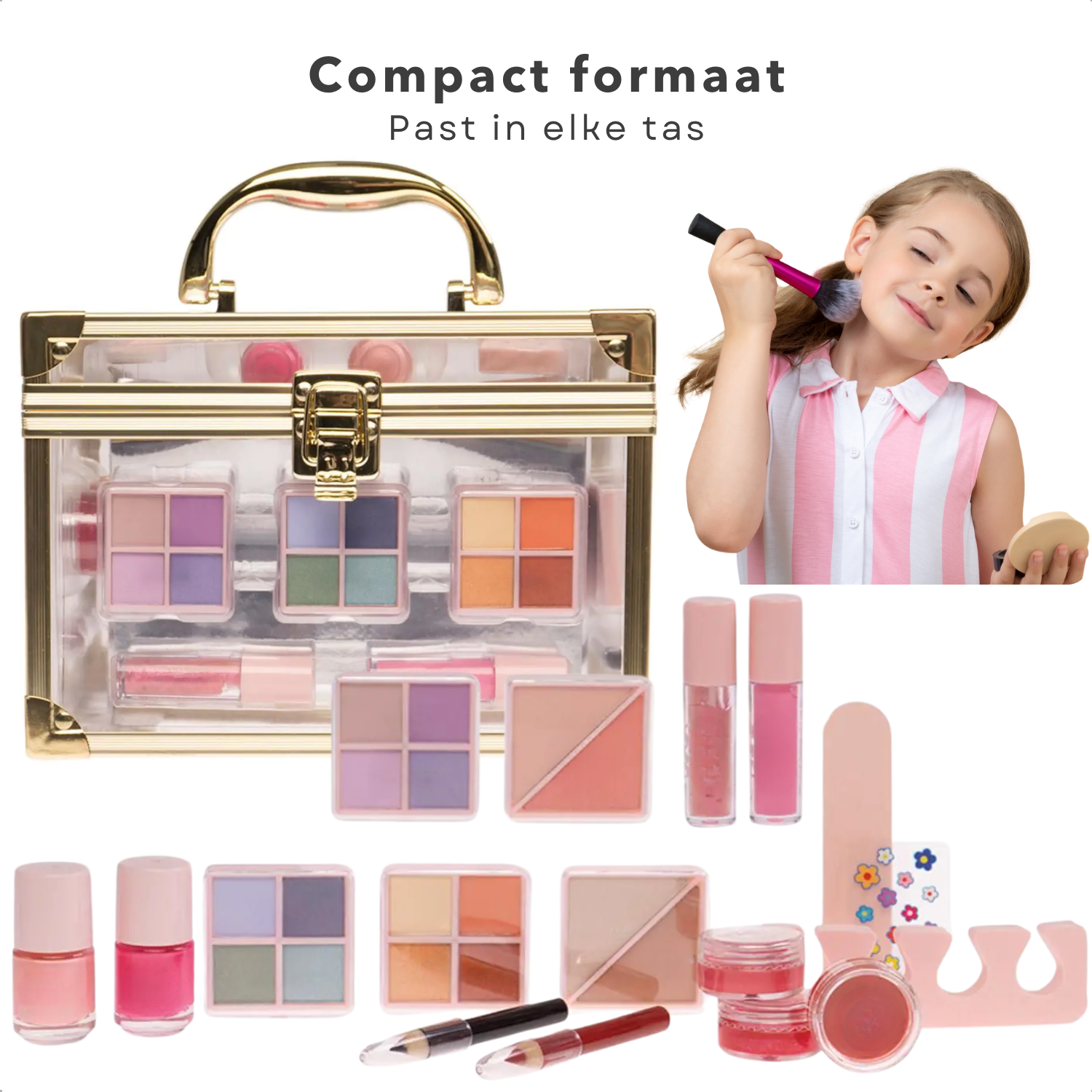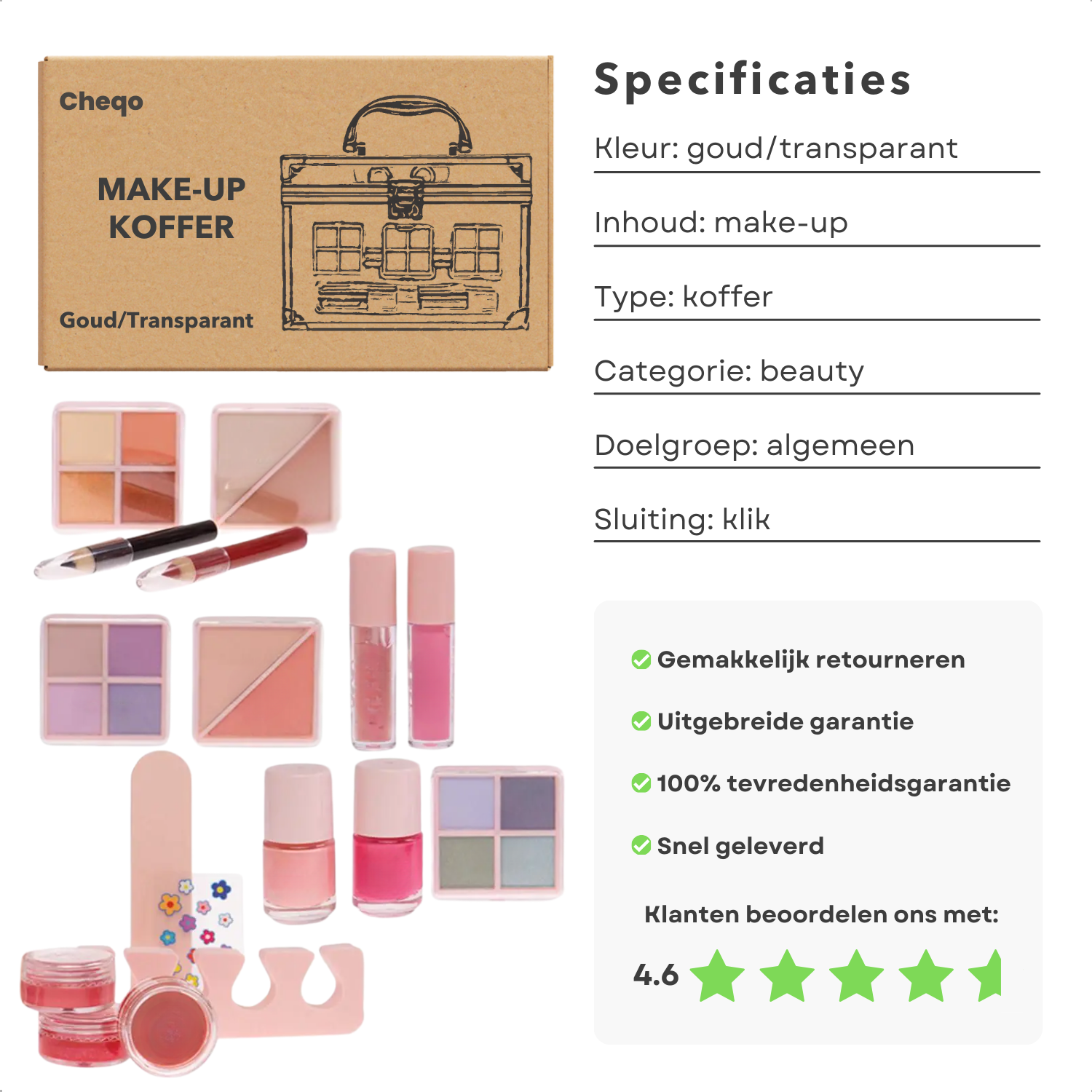 Cheqo® Kindermake-up Koffer - Goud/Transparant - Complete Set met Nagellak en Oogschaduw - Beauty Case met Vakken - Visagiekoffer - Cosmeticakoffer - Beautycase