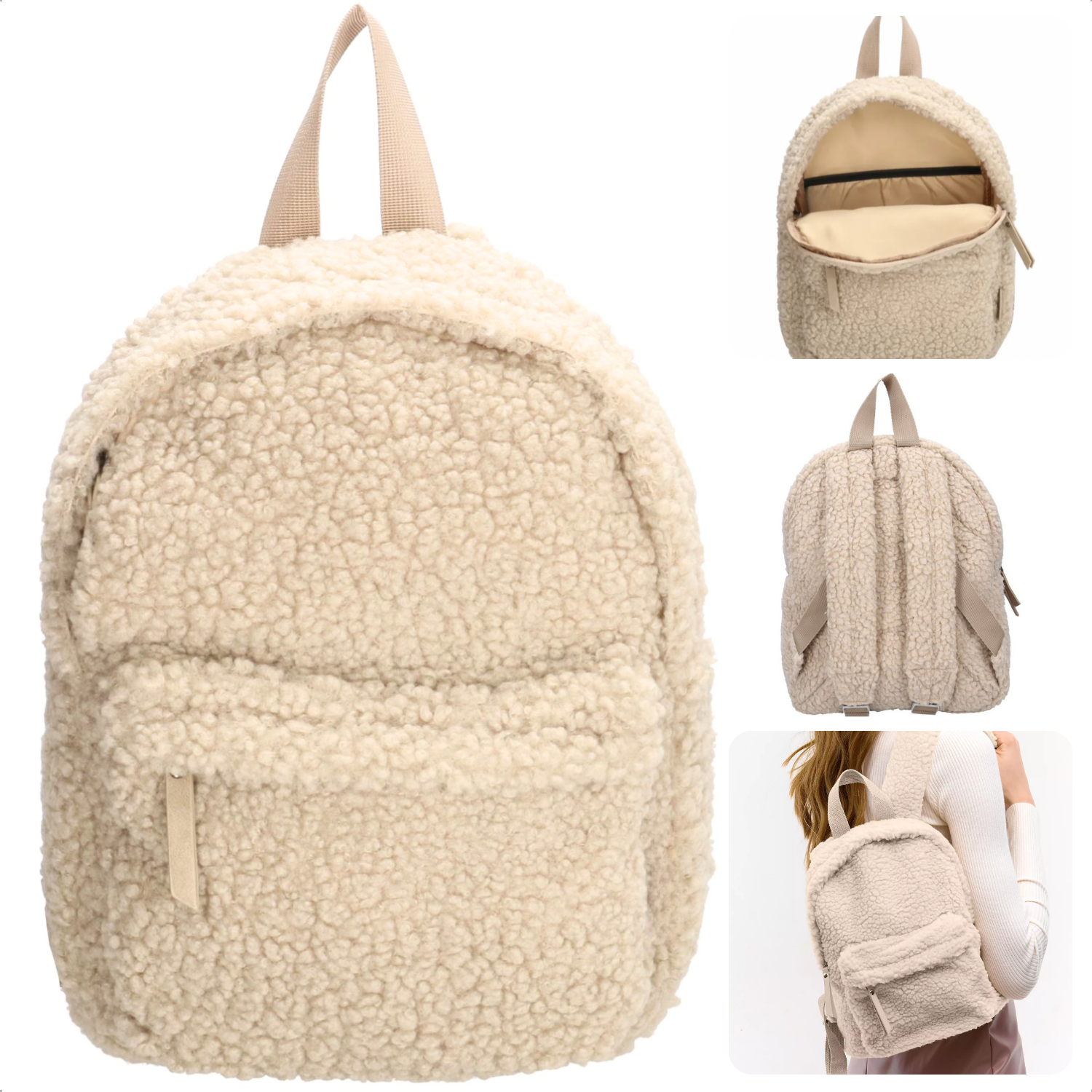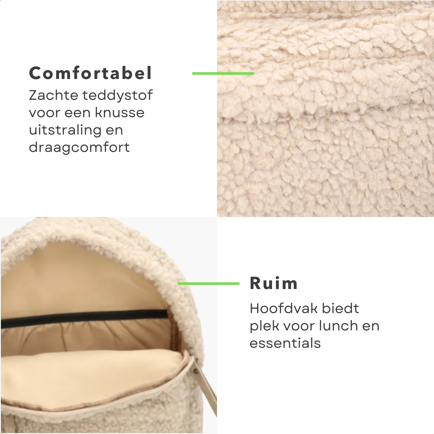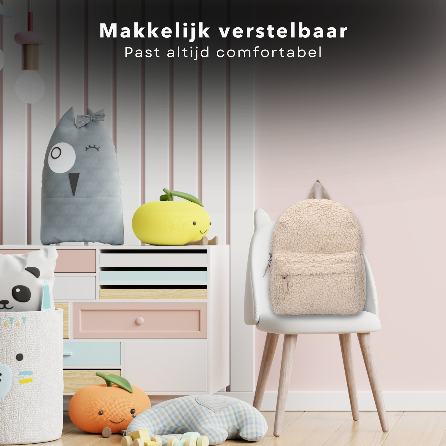 Cheqo® Luxe Kinderrugzak - Rugzak voor Kinderen - Rugtas - Schooltas - Zachte Teddystof - Verstelbare Schouderbanden - Wit