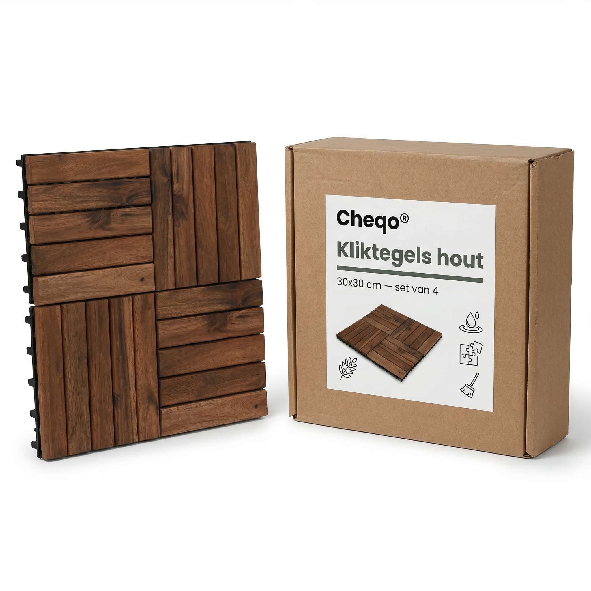 Cheqo® Kliktegels - Houten Kliktegels - Terrastegels - Houten Terrastegels - Balkon Tegels - Balkon Kliktegels - Vlondertegels - Houten Vlondertegels - Tuintegels - Houten Tuintegels